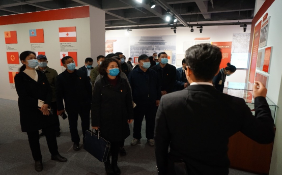 ????為進一步用好紅色資源,賡續紅色血脈,弘揚革命傳統,推動學校黨史學習教育走深走實,11月3日上午,我校組織各黨總支、黨支部書記前往鄭州升達藝術館參觀“旗幟飄揚——黨旗國旗軍旗誕生珍貴史料展”。黨委委員、副校長劉衛紅、王鉻帶領黨員35人參加活動。