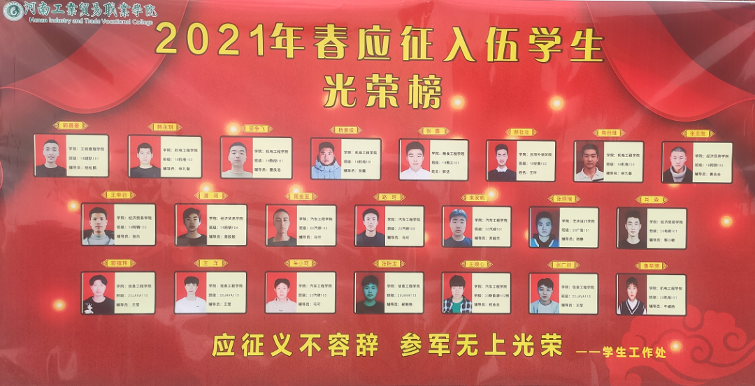 陽春三月送新兵,一身戎裝踏征程。3月17日下午2點半,河南工業貿易職業學院龍湖校區紅旗飄飄,鑼鼓喧天,2021年春季大學生應征入伍歡送會暨出征儀式在紅旗廣場隆重舉行。