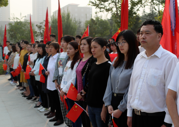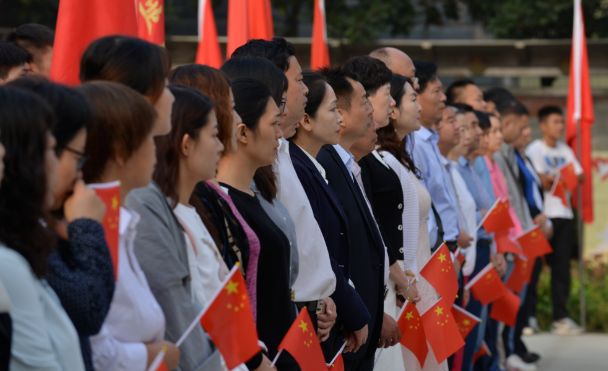 儀式的最后,全場近2000名師生揮動著五星紅旗,唱響了《歌唱祖國》,美麗的廣場成了歡樂的海洋。