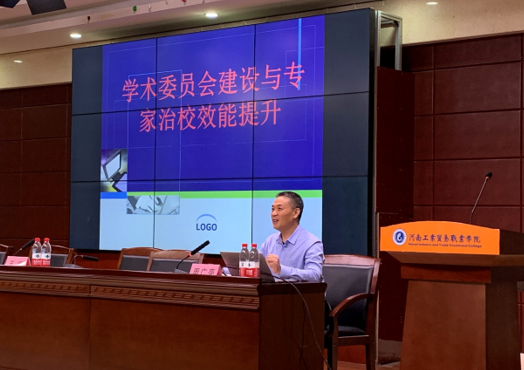 為了在全院范圍內營造專家治校氛圍,充分發揮專家的作用,不斷調動專家的積極性來探索治校治學的有效途徑,從而為學校管理、學科建設、師資建設、人才培養和學術科研等方面保駕護航,科學研究處按照《中共河南工業貿易職業學院委員會關于落實2020年下半年重點工作任務的通知》(豫工貿院黨[2020]127號)要求,組織專家治校能力培訓,邀請鄭州輕工業大學周廣亮教授作為本次培訓的主講嘉賓。周廣亮教授是管理學博士,碩士研究生導師,是鄭州輕工業大學學術委員會委員、學術道德委員會副主任,周教授以《學術委員會建設與專家治校效能提升》為題,分別界定了治校的專家和治理的對象、歸納了專家治校的途徑,闡述了學術委員會與學校領導的關系,并在此基礎上提出了專家治校能力提升的具體路徑。