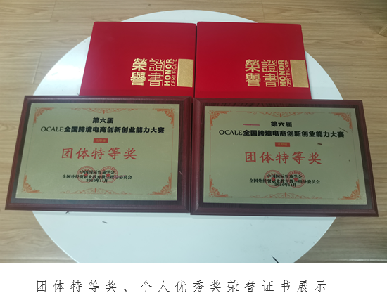 11月2日-4日,由中國國際貿易學會和全國外經貿職業教育教學指導委員會主辦的第六屆OCALE全國跨境電商創新創業能力大賽如期舉行。本屆大賽共有來自全國27個省份本科、高職和中職院校以及留學生組成的708支隊伍參加。高職組分為一、二兩組,每組各有162支參賽隊伍。我校經濟貿易學院電子商務專業由王利冬、許晴晴、馬迪、楊優蘭老師指導,李春哲、杜文龍、馬敬選、侯肖雪、李雨龍、張意祺六位同學組成的兩支參賽隊伍以扎實的專業素養和實踐能力,均榮獲大賽全國高職組團體特等獎。