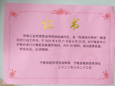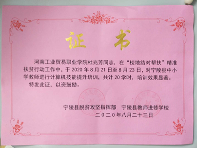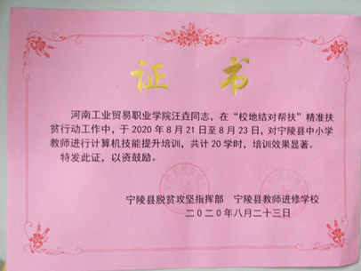 信息工程系將“校地結對幫扶”作為系里一項重要工作,由系負責人直接推進,制定方案,選派優秀老師,組織實施。 2018年11月制定了“信息工程系與寧陵縣結對幫扶精準扶貧行動工作方案”,2019年先后派黃騰飛等老師到寧陵縣授課。為落實2020年7月河南工業貿易職業學院《關于印發《“校地結對幫扶”工作整改實施方案》的通知》(豫工貿黨〔2020〕103號)的精神和要求,針對寧陵縣中小學教師開展信息化培訓事宜,2020年8月6日,制定了信息工程系“校地結對幫扶”實施方案,分批次對寧陵縣中小學骨干教師進行培訓。