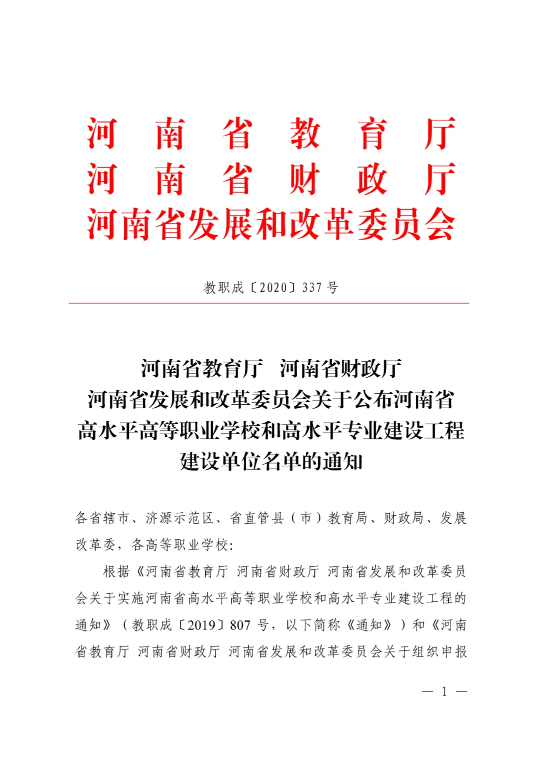 近日,《河南省教育廳 河南省財政廳 河南省發展和改革委員關于公布河南省高水平高等職業學校和高水平專業建設工程建設單位名單的通知》(教職成〔2020〕337號)印發。河南工業貿易職業學院成功入選河南省高水平高等職業學校,電子商務專業成功入選高水平專業群建設工程。這是學院繼今年1月份被認定為省級優質高等職業院校、4月份被評為省級文明校園之后,在辦學70周年迎來的又一個重大喜訊。