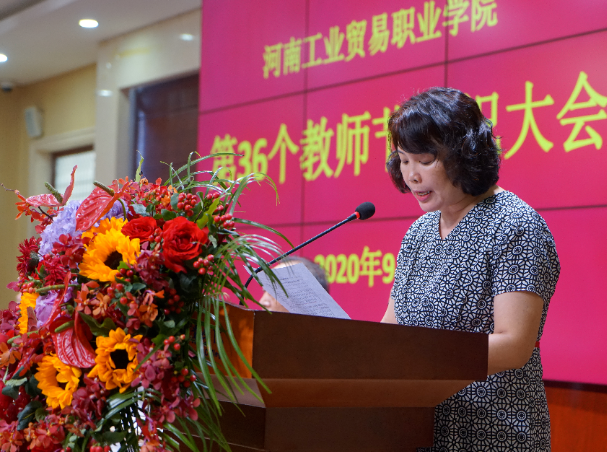 李杰虎宣讀了《河南工業貿易職業學院2019-2020年受省級以上表彰的教師名單》、《河南工業貿易職業學院關于表彰2019年度教學質量優秀教師的決定》、《河南工業貿易職業學院關于表彰優秀教師和先進教育工作者的決定》。