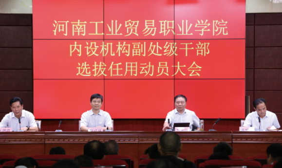 ????9月18日上午,學院內設機構副處級干部選拔任用動員大會在龍湖校區召開,省糧食和物資儲備局人事教育處處長、二級巡視員劉君祥,人事教育處一級調研員陳艷霞等蒞會指導,黨委書記劉合行作動員講話,黨委副書記、院長王國福主持會議,黨委委員、紀委書記王修法宣讀工作方案。