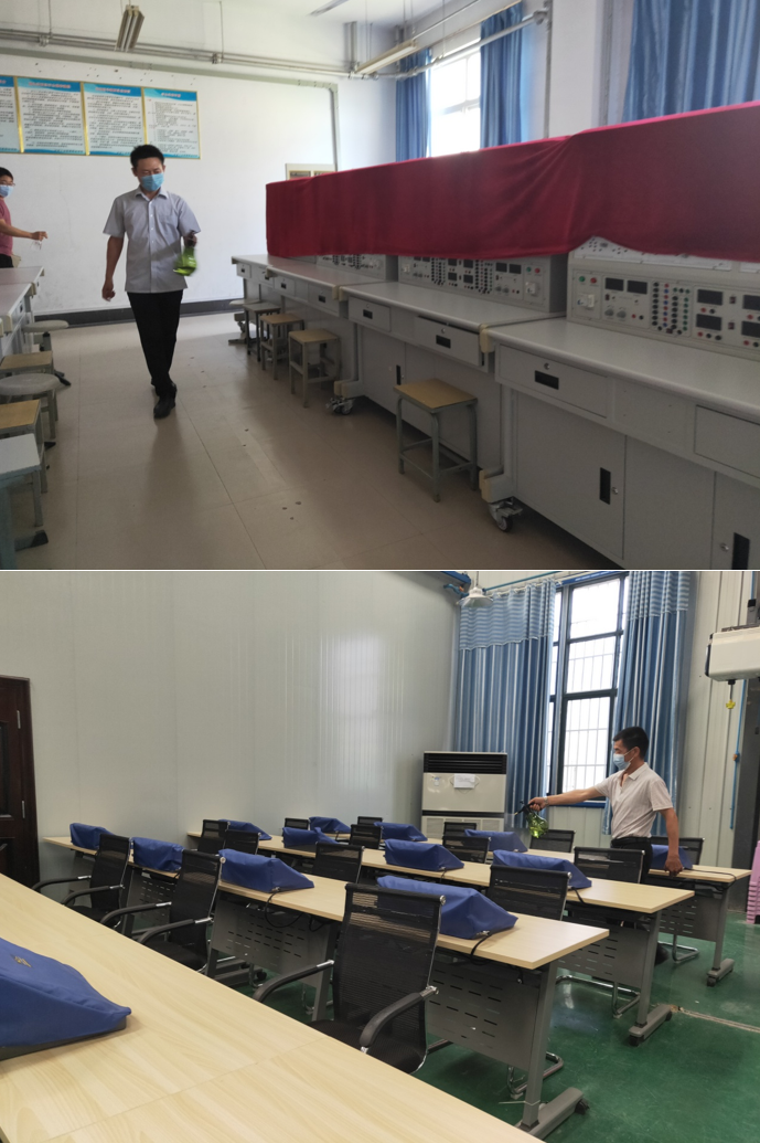 課堂:學生不扎堆,分小組進行。實驗完成后,物品歸位,打掃場地,小組長協助教師對實驗室進行酒精噴灑消毒。期間保持通風。