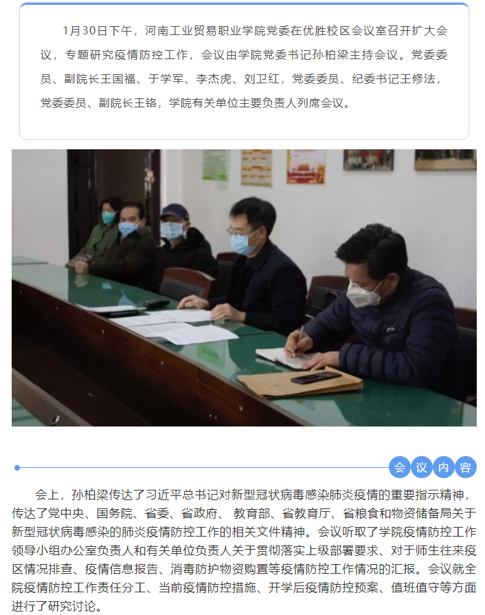 河南工業(yè)貿(mào)易職業(yè)學(xué)院黨委召開擴大會議,專題研究部署疫情防控工作