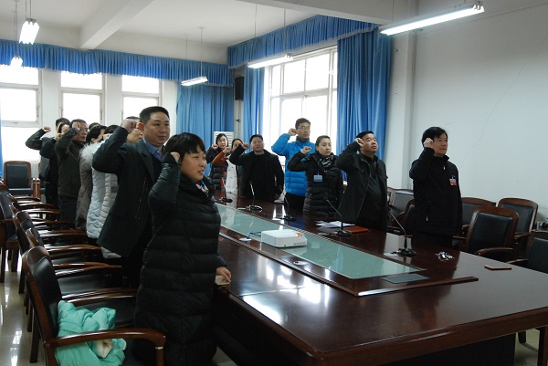 2017年12月28日上午,學院黨委辦公室(學院辦公室、紀委辦公室、監(jiān)察室)黨支部與黨委組織部(統(tǒng)戰(zhàn)部、人力資源處)黨支部在學院二樓大會議室舉行了莊嚴的重溫入黨誓詞活動,活動由黨委組織部部長李明前主持,黨委辦公室主任李春陽領讀誓詞,劉煒副院長以一名普通黨員的身份參加了此次活動。