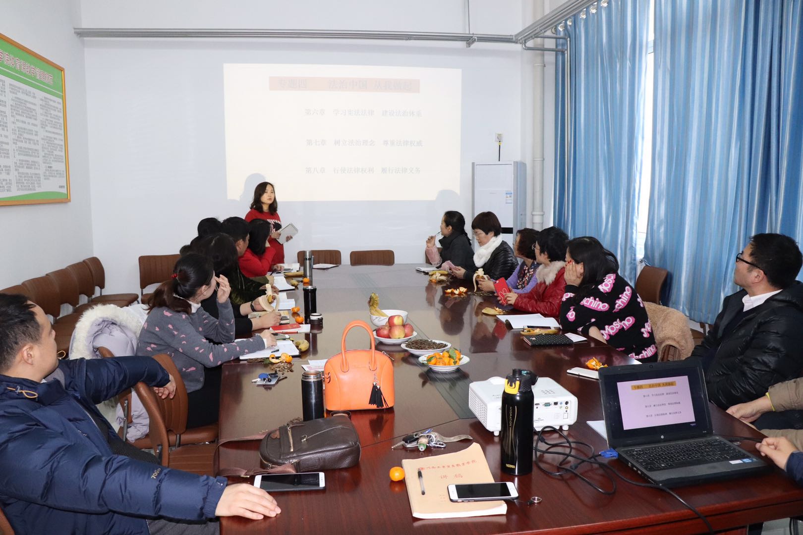 12月26日下午,我院基礎(chǔ)部思想政治理論課教研室就本學(xué)期開展的專題化教學(xué)進(jìn)行了總結(jié),并進(jìn)行了最后一個(gè)專題“法治中國 從我做起”的主題教研活動,負(fù)責(zé)思政課教學(xué)的專兼職教師參加了此次活動。