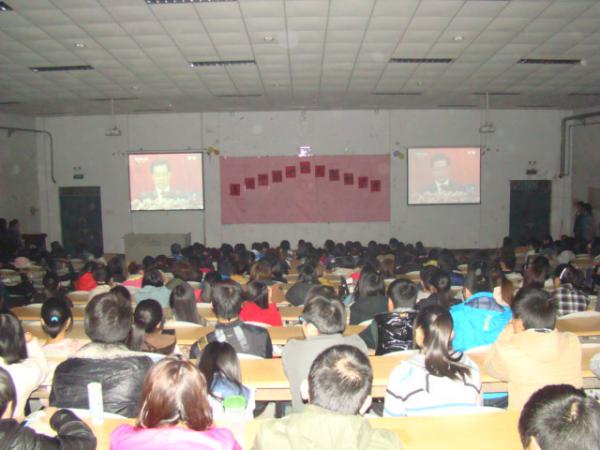 六、積極組織全院學(xué)生干部11月8日18:30,在學(xué)院報(bào)告廳一樓集中觀看十八大開(kāi)幕式現(xiàn)場(chǎng)實(shí)況轉(zhuǎn)播。