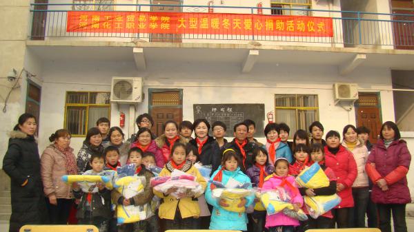 在團省委、省直團工委開展的“溫暖冬天,希望工程愛心大動員”活動的感召下,院團委5名老師和8名學生干部于12月22日下午,滿載著工貿學子的愛心與祝福,來到了圃田鄉河溝王小學,開展“溫暖冬天?2011希望工程愛心大動員”捐贈活動。