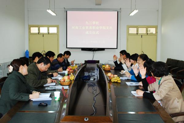 會上,王紅衛秘書長首先宣讀了九三學社河南省農大委員會《關于成立九三學社河南工業貿易職業學院支社的決定》,接著選舉了“九三學社河南工業貿易職業學院支社”第一屆支社委員會,張建軍當選為支社主委,程玲、左錦靜當選為委員。新當選的主委張建軍在會上發言,表示在院黨委、九三省委的領導下,努力做好“九三學社河南工業貿易職業學院支社”的建設、發展工作,繼承和發揚九三學社的優良傳統,積極組織九三社員,不斷學習,與時俱進,同心同德,認真履行參政議政職能,為學院建設和發展發揮應有的作用。