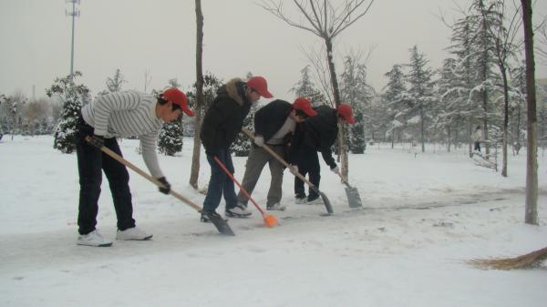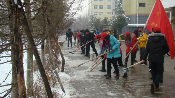 3月1日清晨7點,院團委及青年志愿者的干部們和機電系勤工助學的同學們90余人,弘揚“奉獻、友愛、互助、進步”的志愿精神,紛紛拿起鐵鍬、掃帚,大家分成幾組,分別奔赴教學樓、辦公樓、實訓樓、學生宿舍樓、餐廳等校園各主干道上鏟除校園內的積雪,為方便全院師生的出行,同學們發揚不怕苦、不怕累的奉獻精神,苦苦奮戰了三小時,為廣大師生們營造了一個整潔的校園環境。