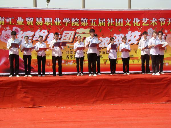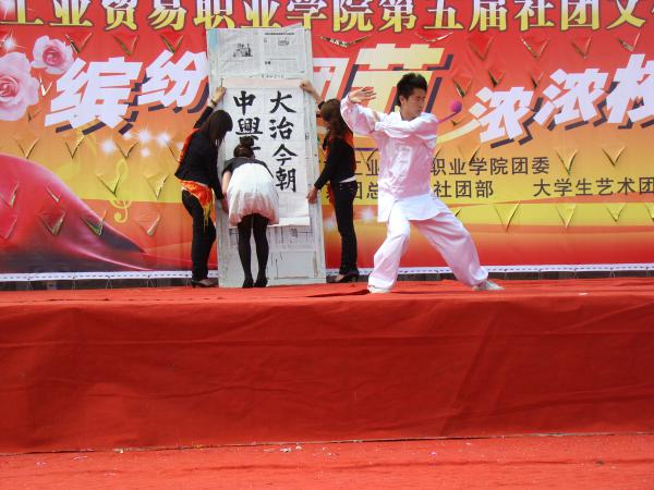 主持人宣布開幕式開始后,各個社團的節目精彩亮相。詩朗誦《在一起》表達了同學們身在校園,情系玉樹之情。街舞《成人禮》、《poker face》令現場觀眾耳目一新,連連叫絕。歌曲《少林,少林》表現了我院學生對中原文化的憧憬和贊嘆。相聲《吹牛》,小品《吉祥三寶》演的聲情并茂,引得臺下陣陣笑聲。時裝秀更是贏得陣陣掌聲。整場演出舞蹈、歌曲、相聲、朗誦引人入勝,魔術、太極、樂隊表演技驚四座。精彩紛呈的文藝演出體現了我院社團活動的豐富多彩,展示了我院大學生的多才多藝。伴隨著社團文化藝術節的開幕,校園書法大賽、小品大賽、演講比賽、征文比賽等一系列的社團活動已陸續展開,我院師生將度過一個豐富多彩的繽紛五月。