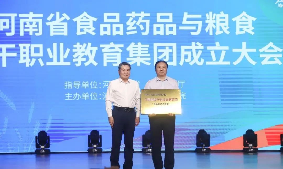 陳垠亭為河南省食品藥品與糧食骨干職業教育集團授牌,河南工業貿易職業學院作為理事長單位接受授牌。最后,與會領導共同為河南省食品藥品與糧食骨干職業教育集團舉行啟動儀式。