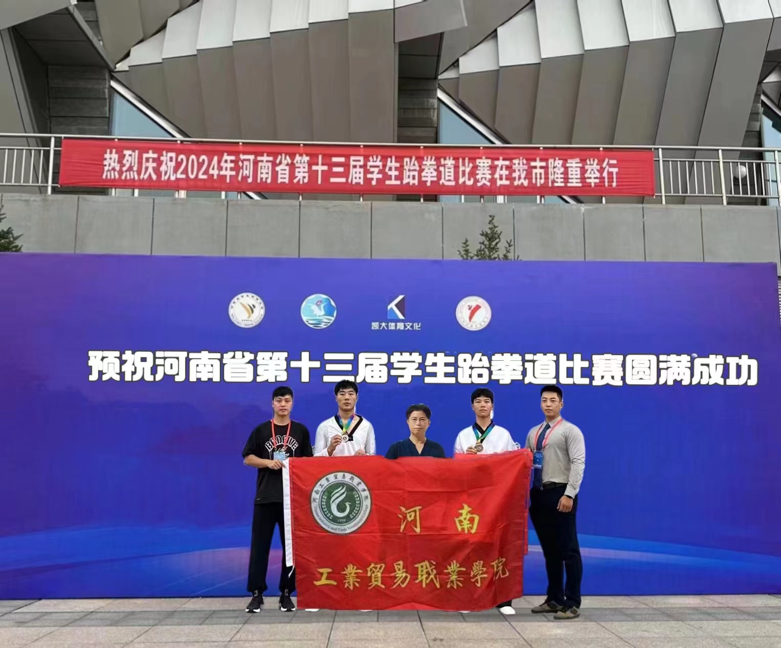 7 月 13 日至 17 日,河南省第十三屆學(xué)生跆拳道比賽(大學(xué)生組)在鶴壁千鶴之舞體育館盛大開(kāi)幕。本次大賽由河南省教育廳主辦,河南省學(xué)生體育總會(huì)跆拳道協(xié)會(huì)負(fù)責(zé)執(zhí)行,鶴壁市教育體育局承辦。大賽吸引了來(lái)自河南大學(xué)、鄭州大學(xué)等多達(dá) 63 所高校的 749 名教練員、運(yùn)動(dòng)員踴躍參與。此次河南工業(yè)貿(mào)易職業(yè)學(xué)院參賽隊(duì)共斬獲銀牌一枚,銅牌一枚,第四名兩項(xiàng),第六名、第八名各一項(xiàng)。