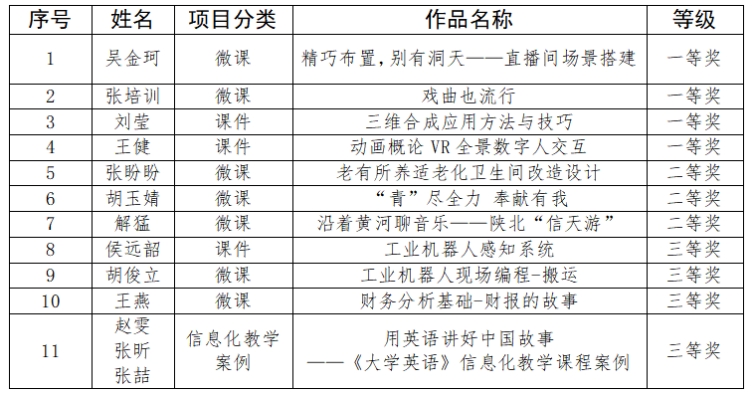 本次大賽自5月份啟動以來,學校黨委高度重視,教務處認真籌備、精心組織、積極動員,各二級學院踴躍參加,共申報參賽項目32個,經專家評審擇優推薦15項參加比賽。比賽中,參賽選手精心設計教學方案,巧妙運用多媒體教學手段,將復雜的知識以生動有趣的方式呈現出來。最終,我校教師在微課類項目中獲得2個一等獎、3個二等獎、2個三等獎,在課件類項目中獲得2個一等獎、1個三等獎,在信息化教學案例類項目中獲得1個三等獎。