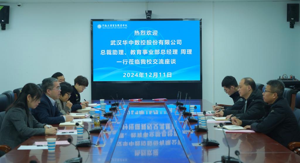 曹利強對周理一行表示熱烈歡迎,詳細介紹了學(xué)校的基本情況和發(fā)展特色。他表示,我校以糧食類專業(yè)為龍頭、以工科類專業(yè)為主,根據(jù)教育部要求,將進一步加大理工科人才培養(yǎng)。希望通過與華中數(shù)控股份有限公司的合作,能夠打造“糧食+”、“專業(yè)+”、“數(shù)字+”、“國際+”特色,在合作中強化智能制造數(shù)字化、AI賦能應(yīng)用,發(fā)揮武漢華中數(shù)控股份有限公司在智能制造領(lǐng)域的優(yōu)勢,推動雙方在人才培養(yǎng)、實踐教學(xué)、就業(yè)創(chuàng)業(yè)等多方面深度協(xié)作,打造校企合作、產(chǎn)教融合的新標桿。