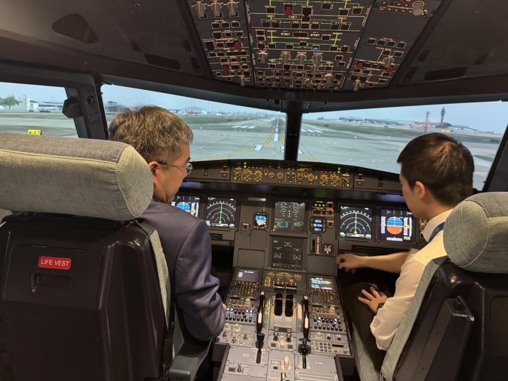 珠海翔翼航空技術有限公司前身為南航飛行訓練中心,深耕飛行仿真、安全研究等領域30余年,是低空經濟領域的標桿企業。翔翼科創部負責人王炅攜核心團隊詳細介紹了企業發展歷程、科研轉化成果及未來國際化戰略布局。現場演示了國產民機模擬器研發成果,并帶領調研團參觀智能化飛行訓練基地。