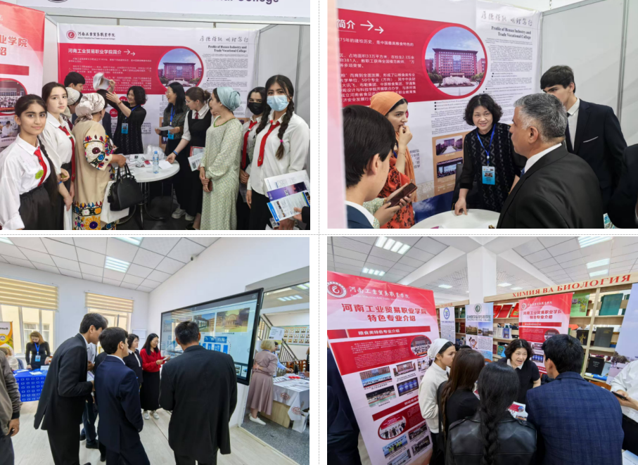 各國院校代表和塔吉克斯坦學(xué)生來學(xué)校展位咨詢交流