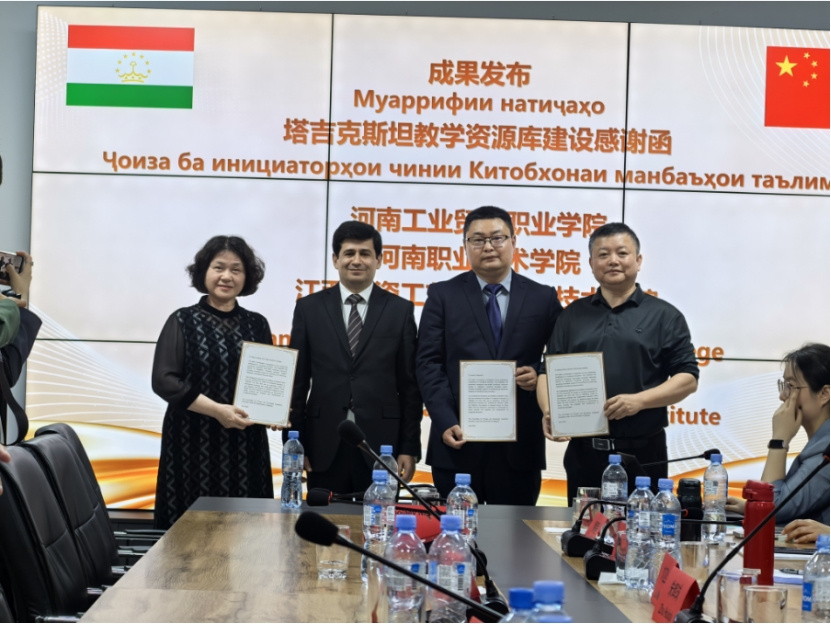 塔吉克斯坦職教委阿利舍爾主席為支援塔吉克斯坦教學(xué)資源庫建設(shè)的院校頒發(fā)感謝函