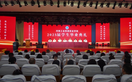 6月21日上午,河南工業貿易職業學院2025屆學生畢業典禮在龍湖校區學術報告廳舉行。全體校領導出席典禮。典禮由校黨委副書記柴瑞帥主持。