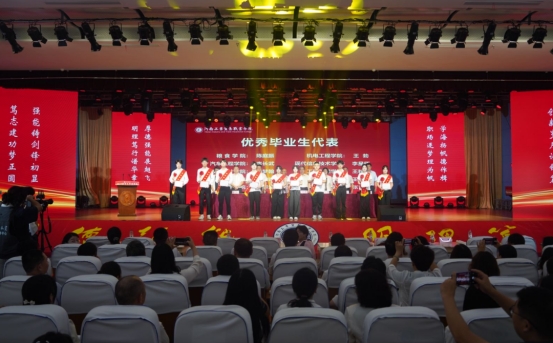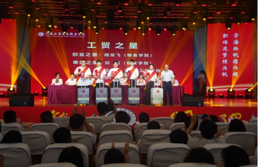 畢業典禮在莊嚴的國歌聲中拉開帷幕。校黨委書記李國鋒為“工貿之星”頒發榮譽證書和獎品。