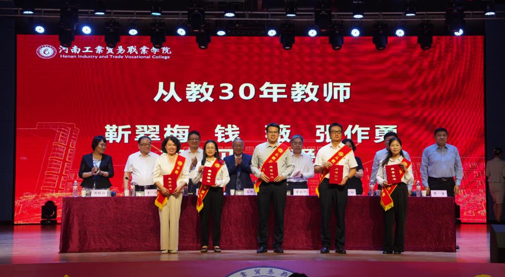 會上,李國鋒帶領全體教師重溫教師誓詞。會議表彰了獲得省級及以上榮譽的集體和個人,為從教30年以上教師頒發榮譽證書。教師代表馬迪、從教30年教師代表賀貝、學生代表馬豪分別發言。