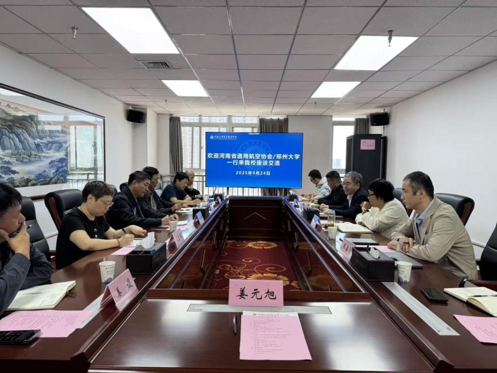 9月24日上午,原高法紀(jì)檢組長、鄭州大學(xué)省直校友會副會長張中林、河南省通用航空協(xié)會副秘書長王國勝一行蒞臨我校考察交流。校長曹利強(qiáng)出席座談會,會議由副校長周艷麗主持。