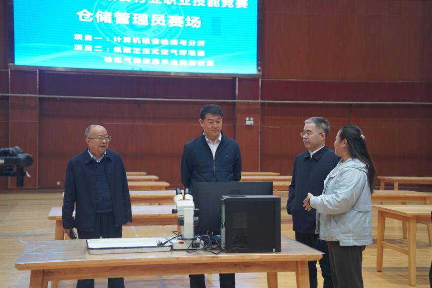 10月12日,國(guó)家糧食和物資儲(chǔ)備局副局長(zhǎng)王宏一行蒞臨我校龍湖校區(qū),就我校承辦的第七屆全國(guó)糧食行業(yè)職業(yè)技能競(jìng)賽的籌備情況進(jìn)行實(shí)地調(diào)研考察,并主持召開座談會(huì)。中國(guó)糧食研究培訓(xùn)中心副主任(主持工作)唐成、副主任程繼偉,河南省糧食和物資儲(chǔ)備局局長(zhǎng)張弓、副局長(zhǎng)陳曉鵬等領(lǐng)導(dǎo),及我校全體在鄭校領(lǐng)導(dǎo)參加調(diào)研和座談。