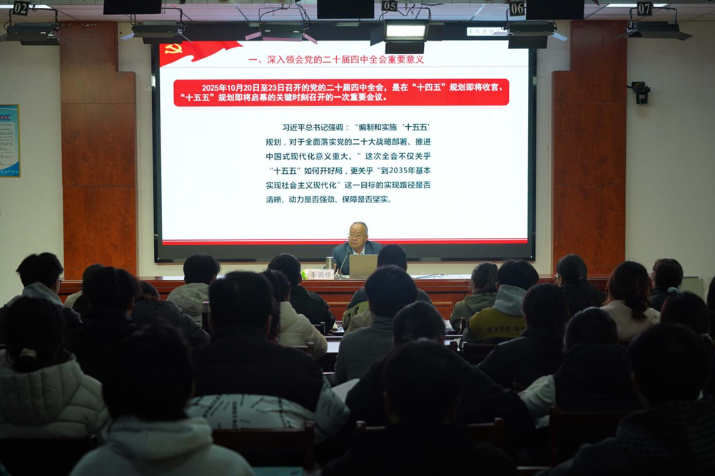 李國鋒緊扣黨的制度優勢、百年黨史脈絡,結合黨的重要會議歷程與中共中央全會核心要義,深入闡釋二十屆四中全會的重大現實意義、鮮明時代特征、核心精神實質以及青年黨員發展對象的使命擔當與踐行要求。他強調,黨的二十屆四中全會是在“十四五”規劃即將收官、“十五五”規劃即將啟幕的關鍵時刻召開的一次重要會議,《中共中央關于制定國民經濟和社會發展第十五個五年規劃的建議》擘畫了“十五五”的宏偉藍圖,如何將全會精神轉化為助力學校內涵發展、服務國家高質量發展的生動實踐,是青年學子必須答好的時代考卷。