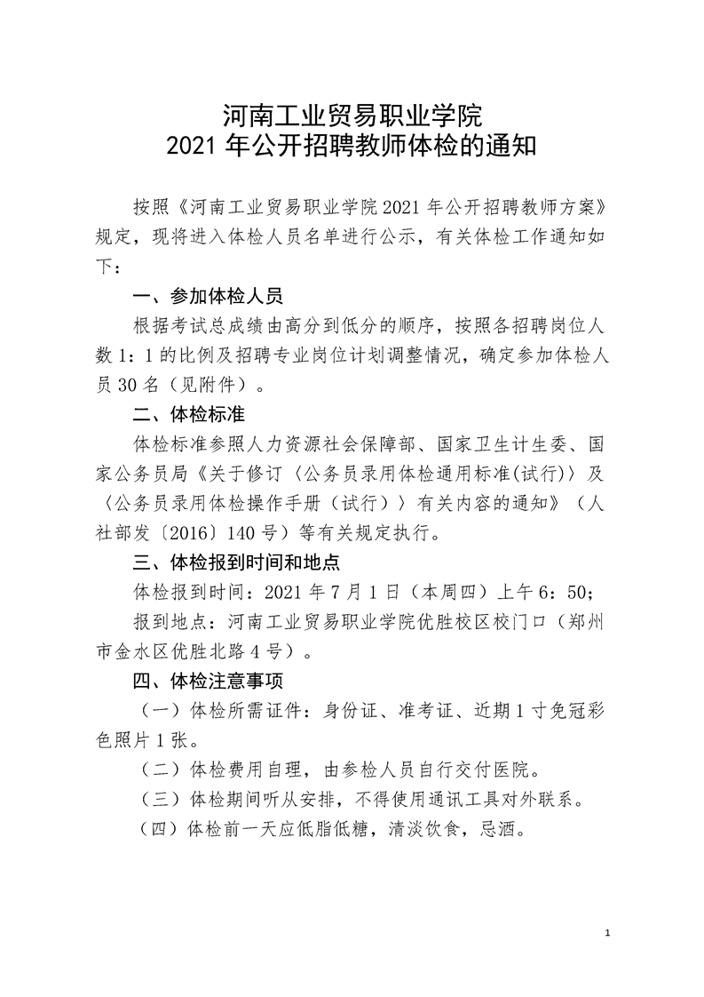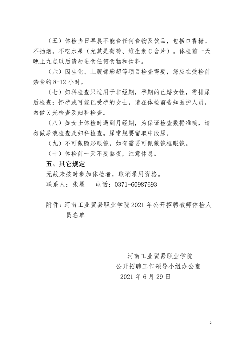 河南工業貿易職業學院2021年公開招聘教師體檢人員名單6.29.zip