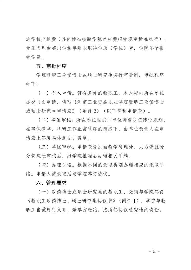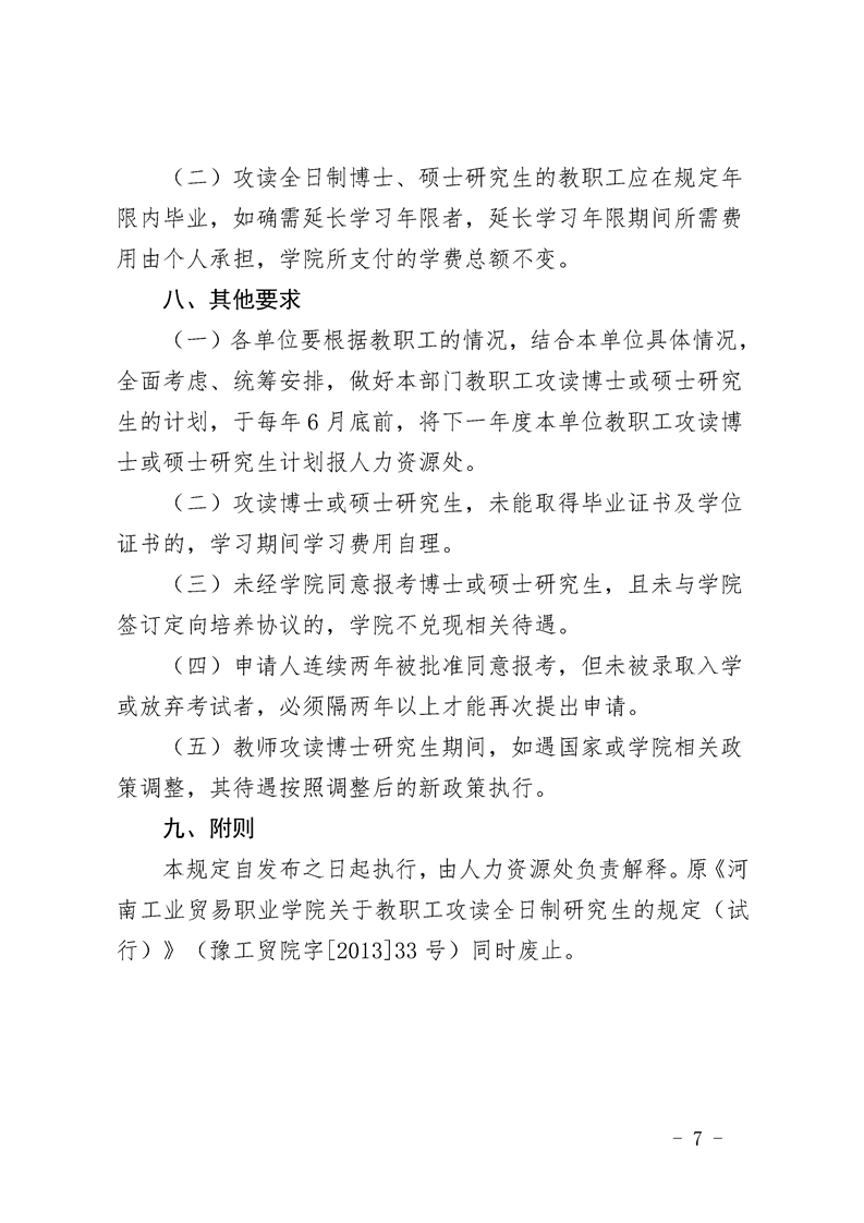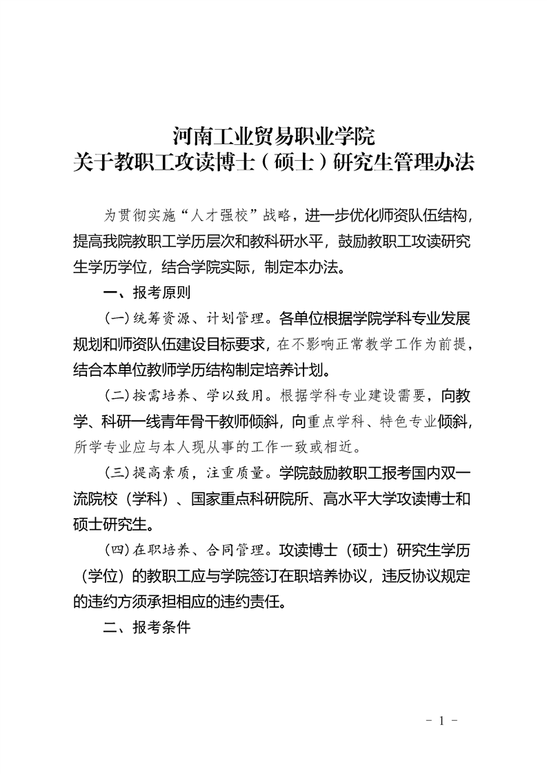 河南工業貿易職業學院教職工攻讀博士(碩士)研究生管理辦法
