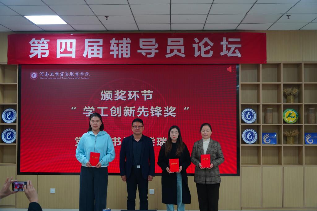 論壇尾聲,校黨委副書記柴瑞帥為2025年省級(jí)思政精品項(xiàng)目獲獎(jiǎng)代表頒發(fā)“學(xué)工創(chuàng)新先鋒獎(jiǎng)”