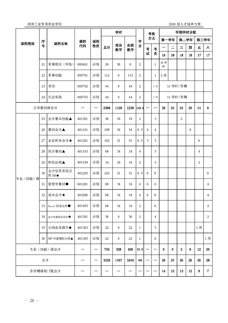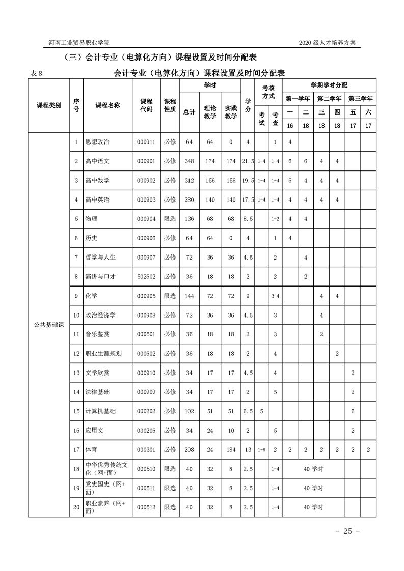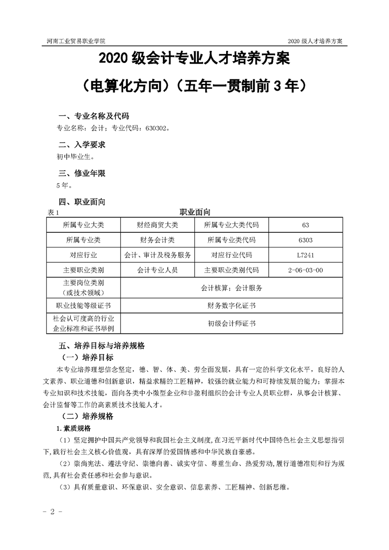 31.2020級會計專業(電算化方向)(五年一貫制前3年)人才培養方案
