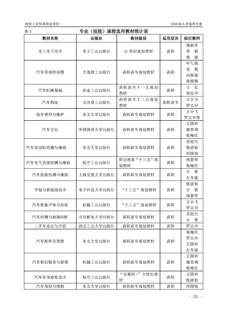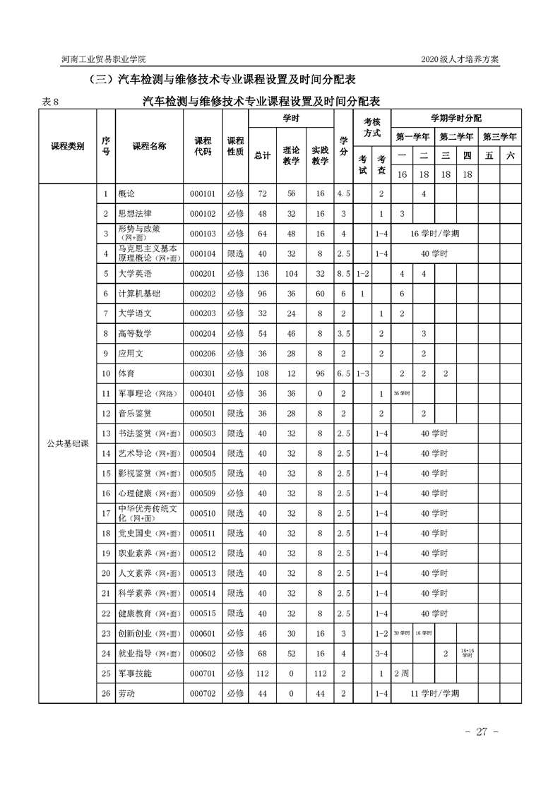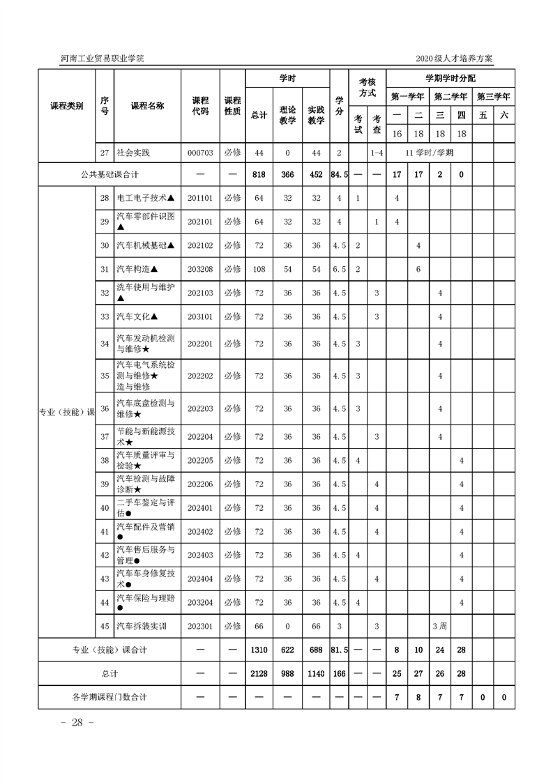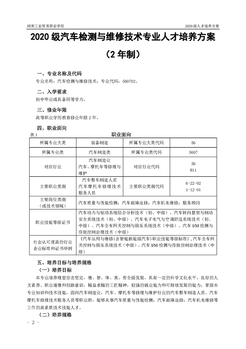 16.2020級汽車檢測與維修技術專業(2年制)人才培養方案