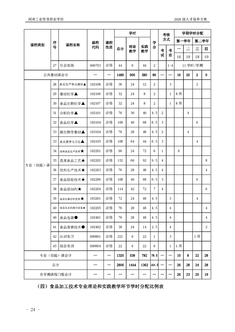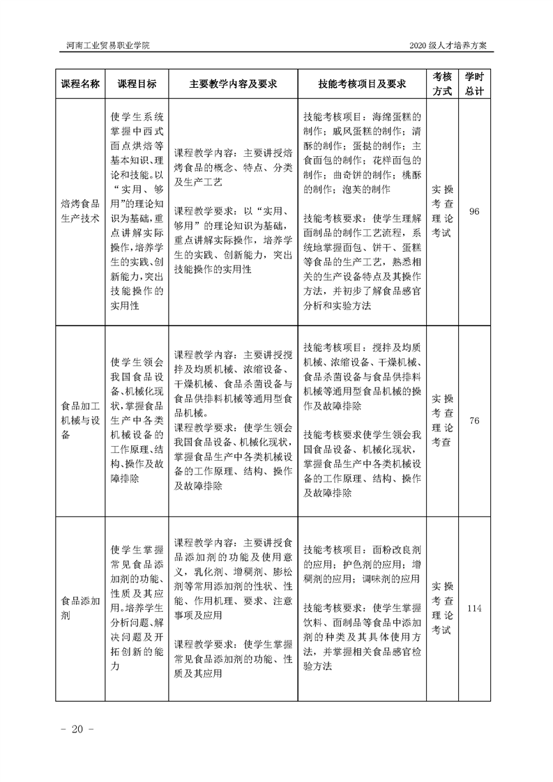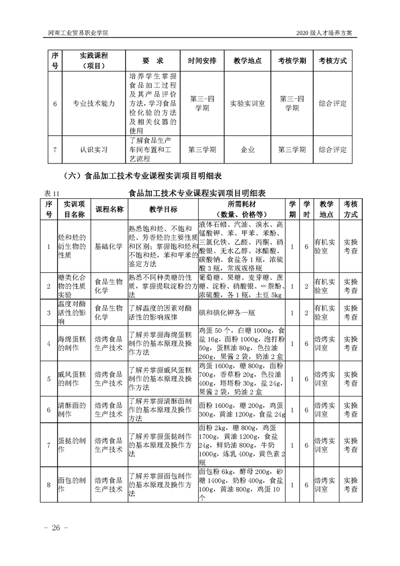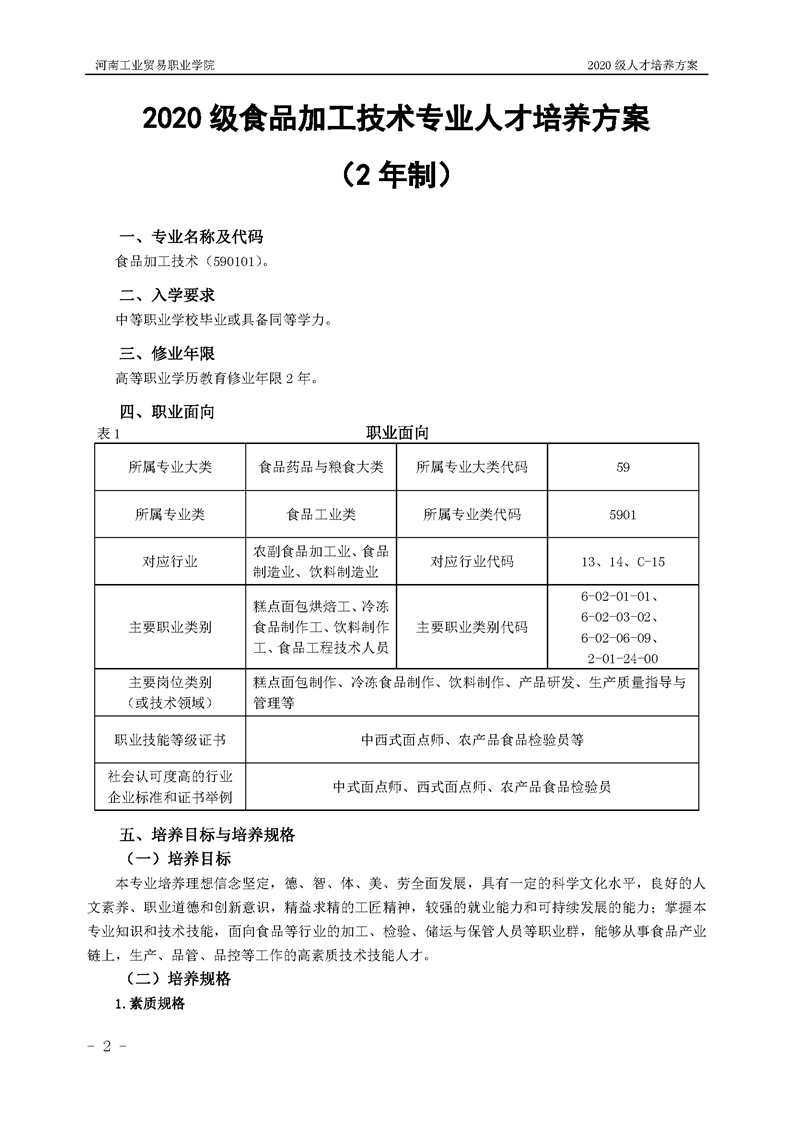 6.2020級食品加工技術專業(2年制)人才培養方案