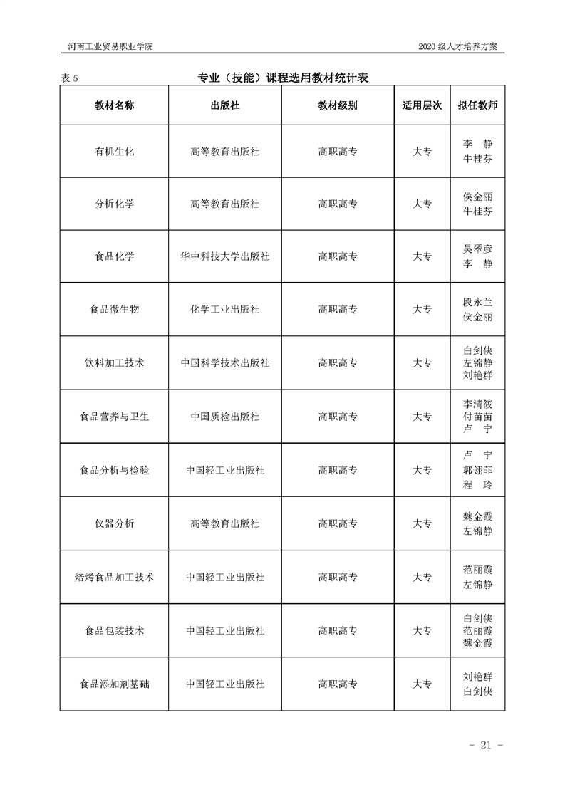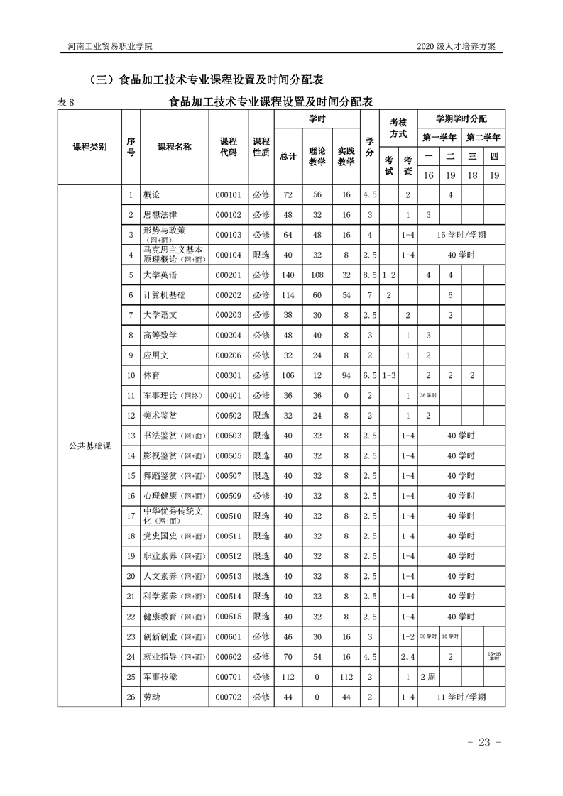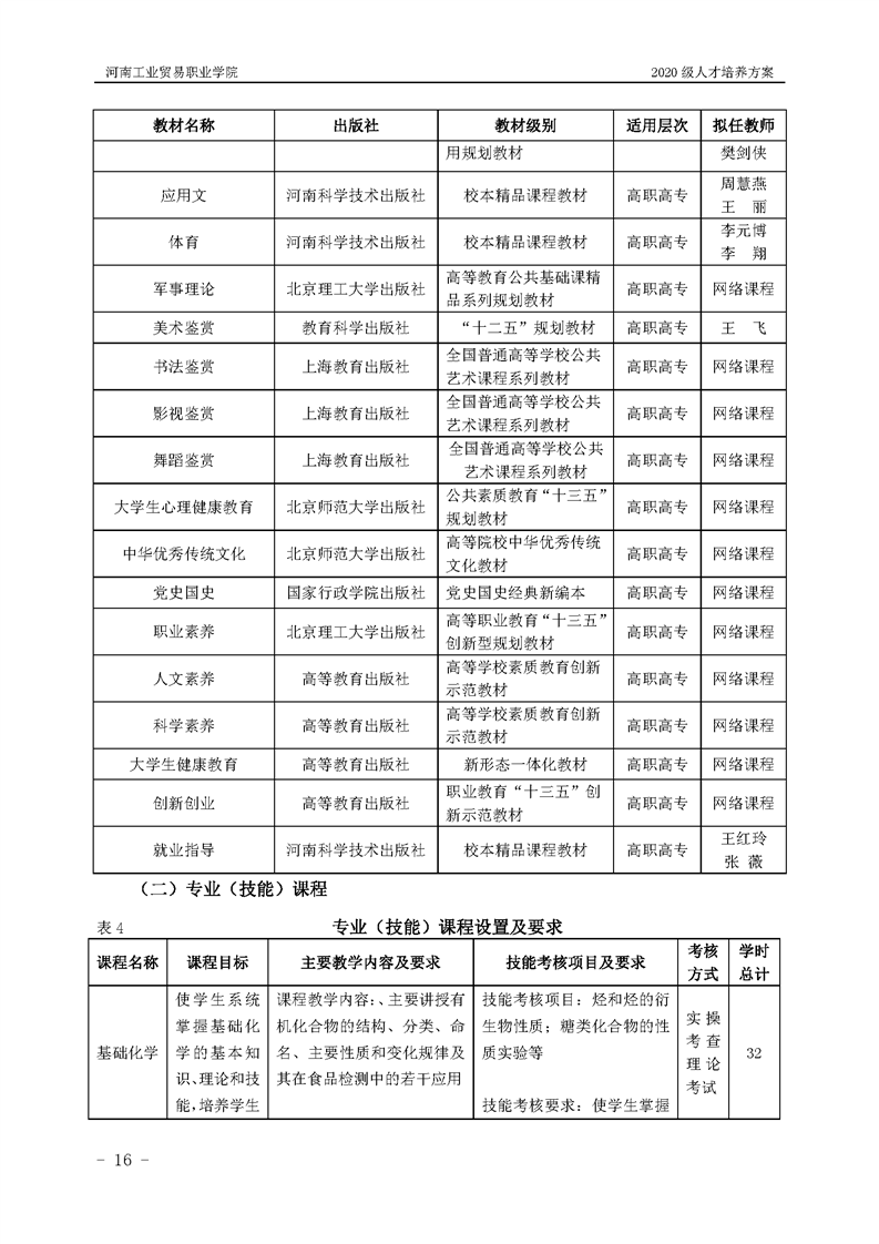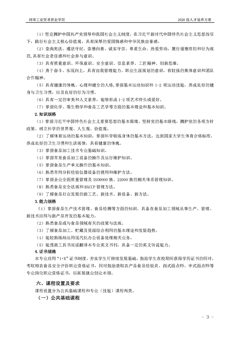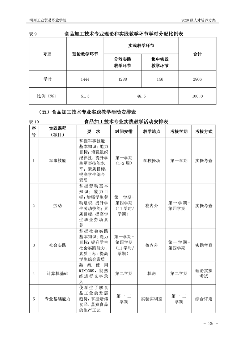 6.2020級食品加工技術專業(2年制)人才培養方案