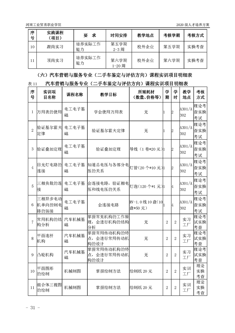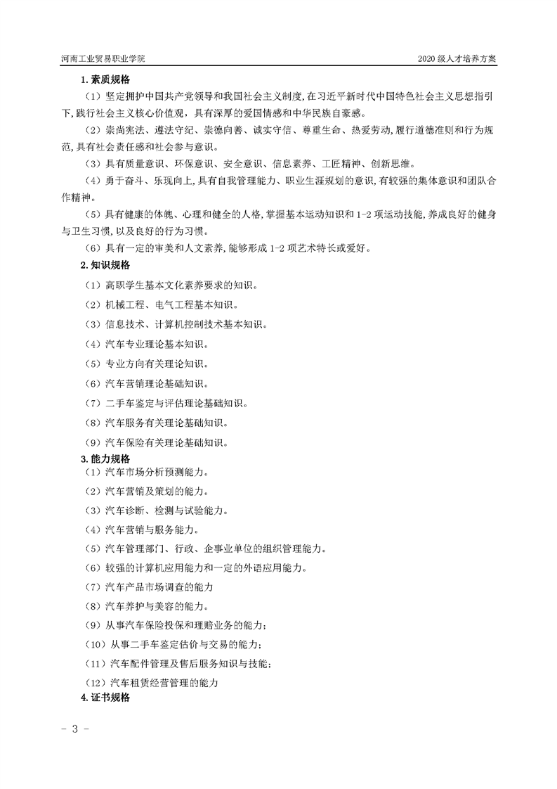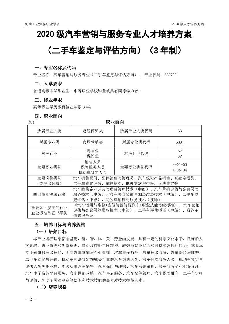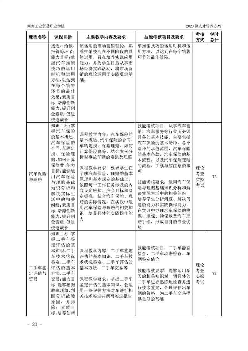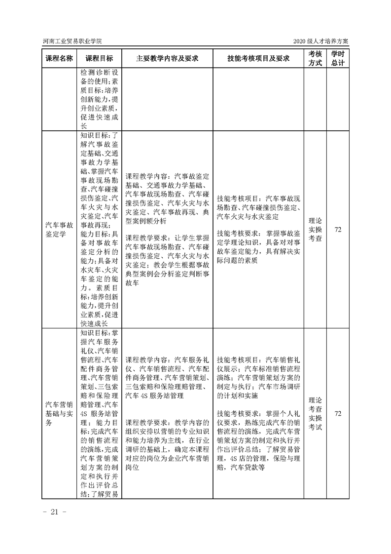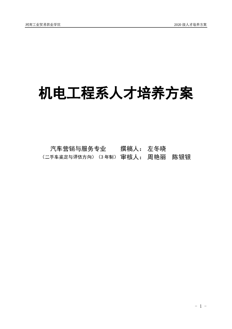 12.2020級汽車營銷與服務專業(二手車鑒定與評估方向)(3年制)人才培養方案