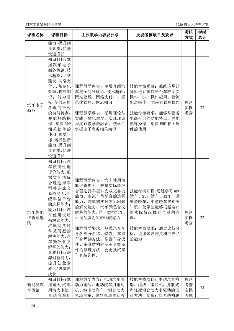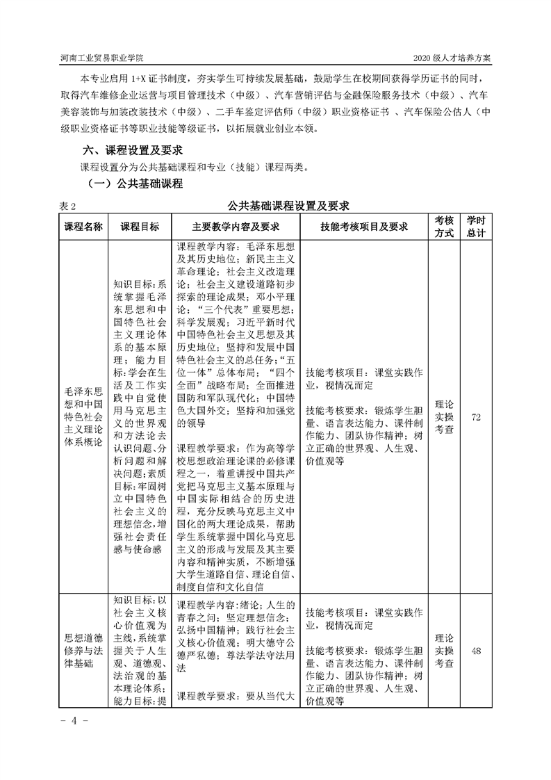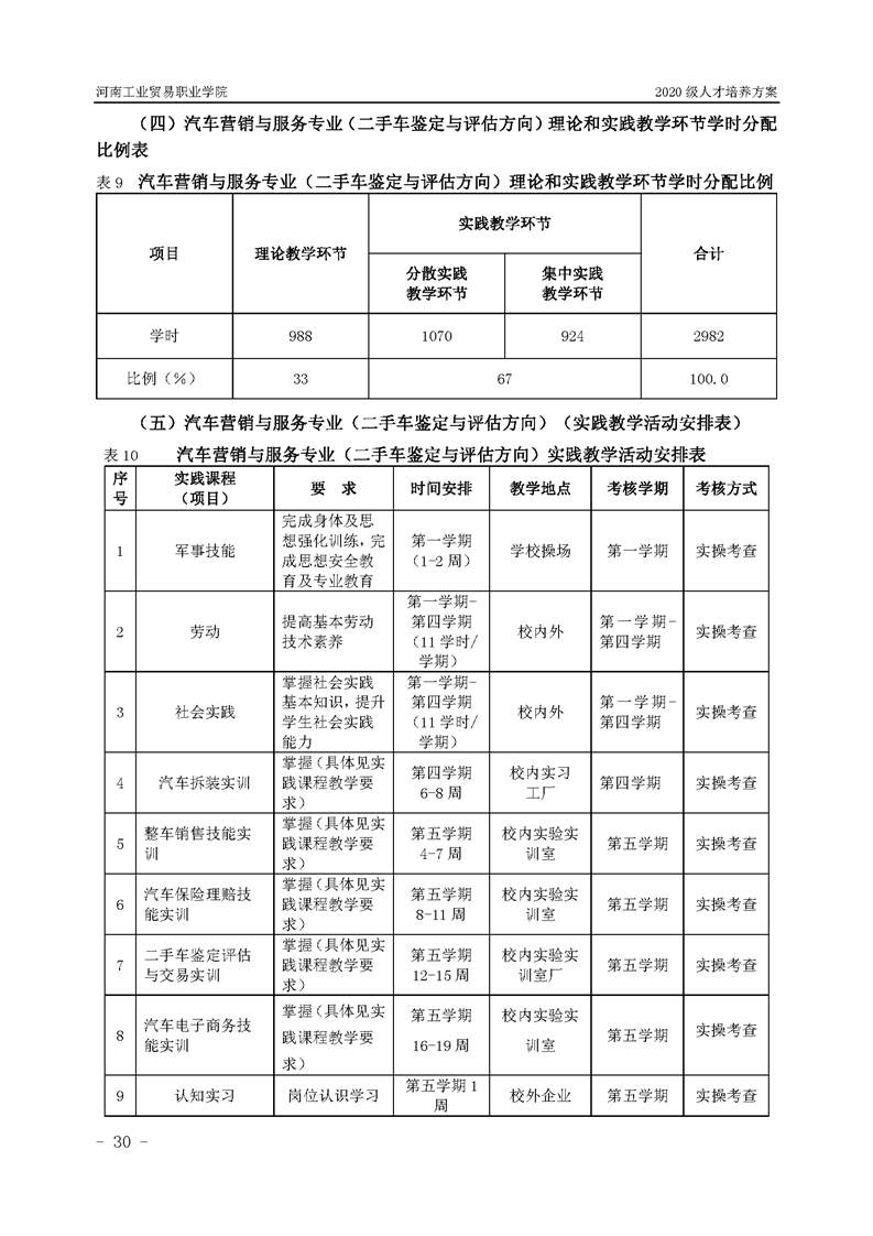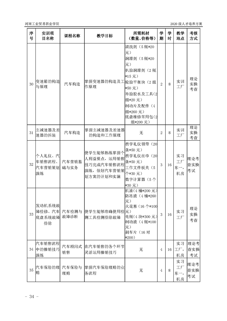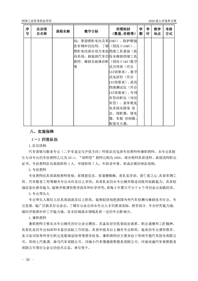 12.2020級汽車營銷與服務專業(二手車鑒定與評估方向)(3年制)人才培養方案