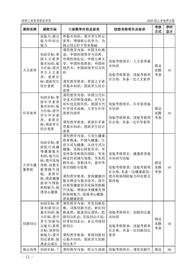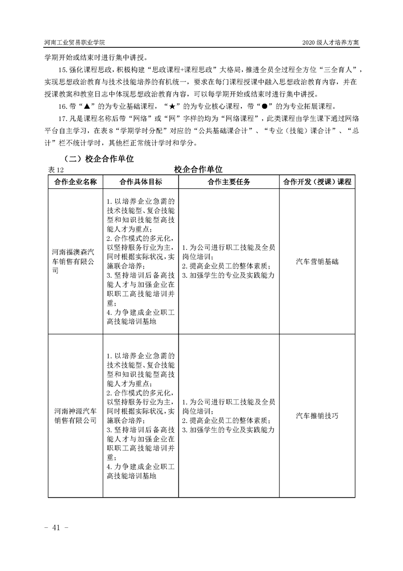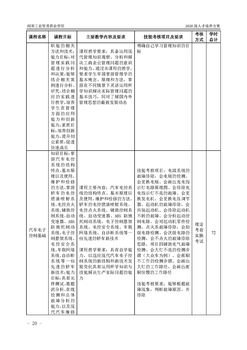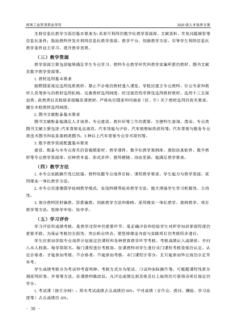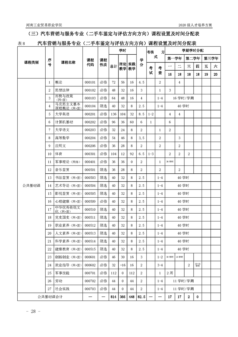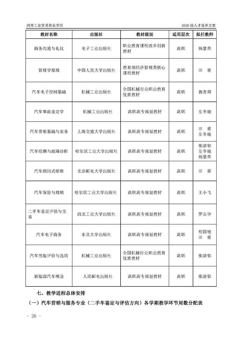 12.2020級汽車營銷與服務專業(二手車鑒定與評估方向)(3年制)人才培養方案