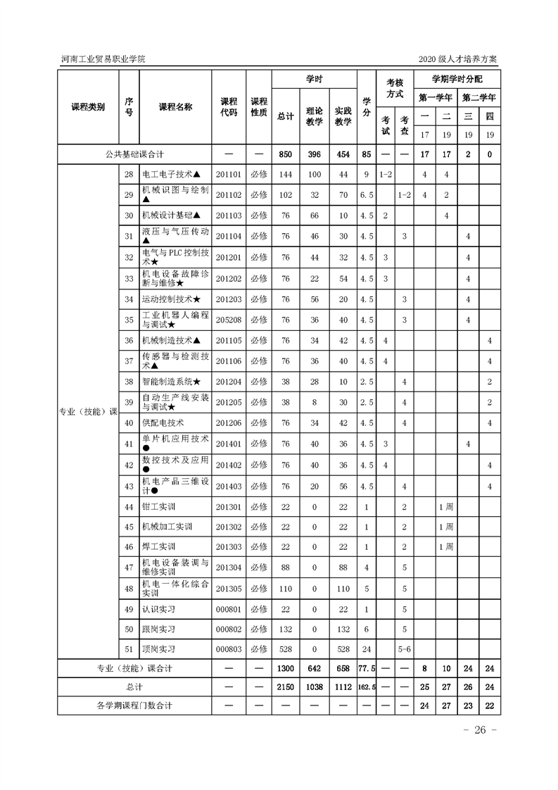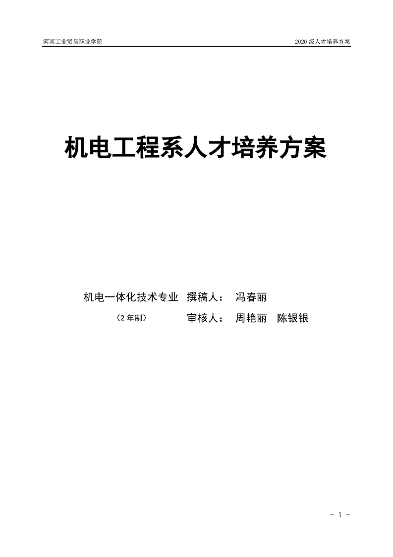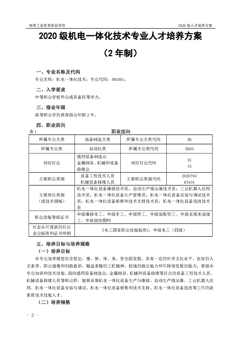 15.2020級機電一體化技術專業(2年制)人才培養方案