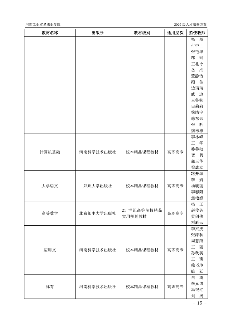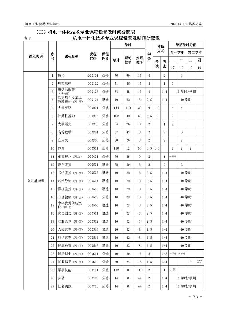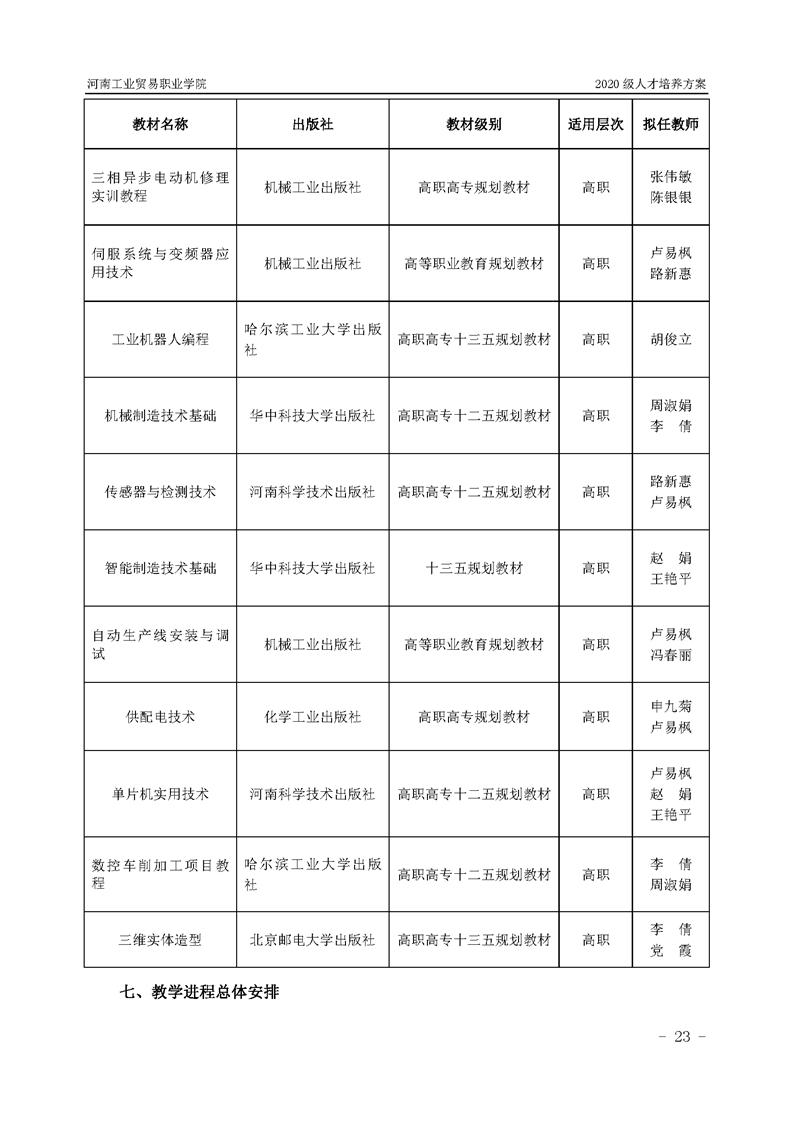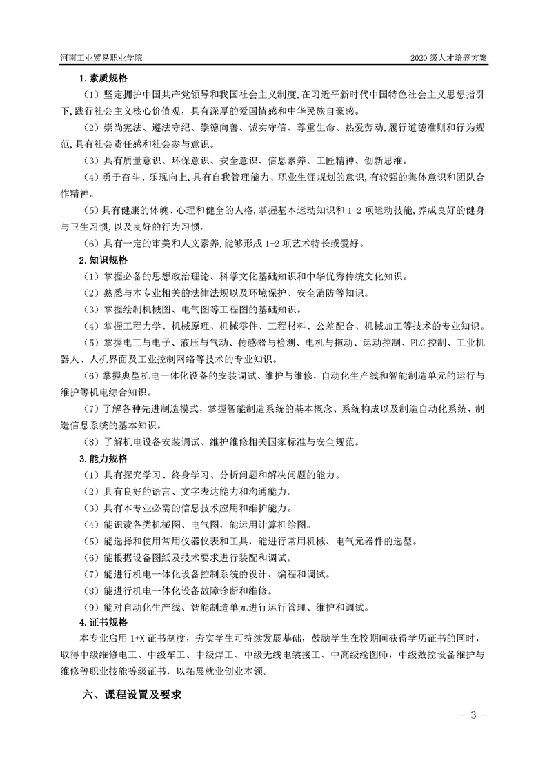 15.2020級機電一體化技術專業(2年制)人才培養方案