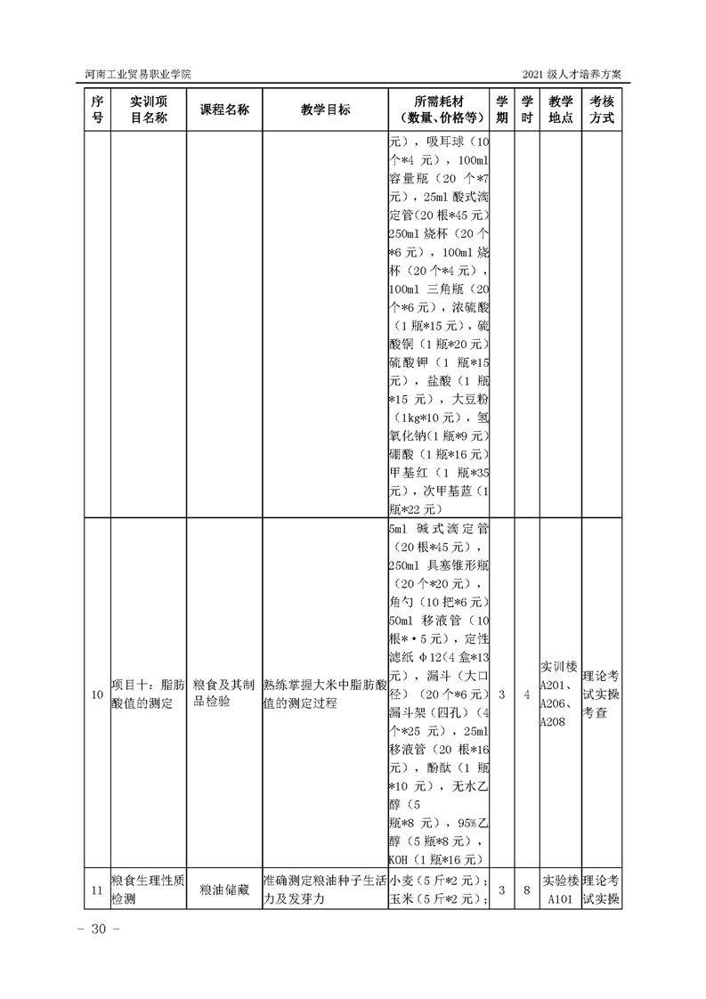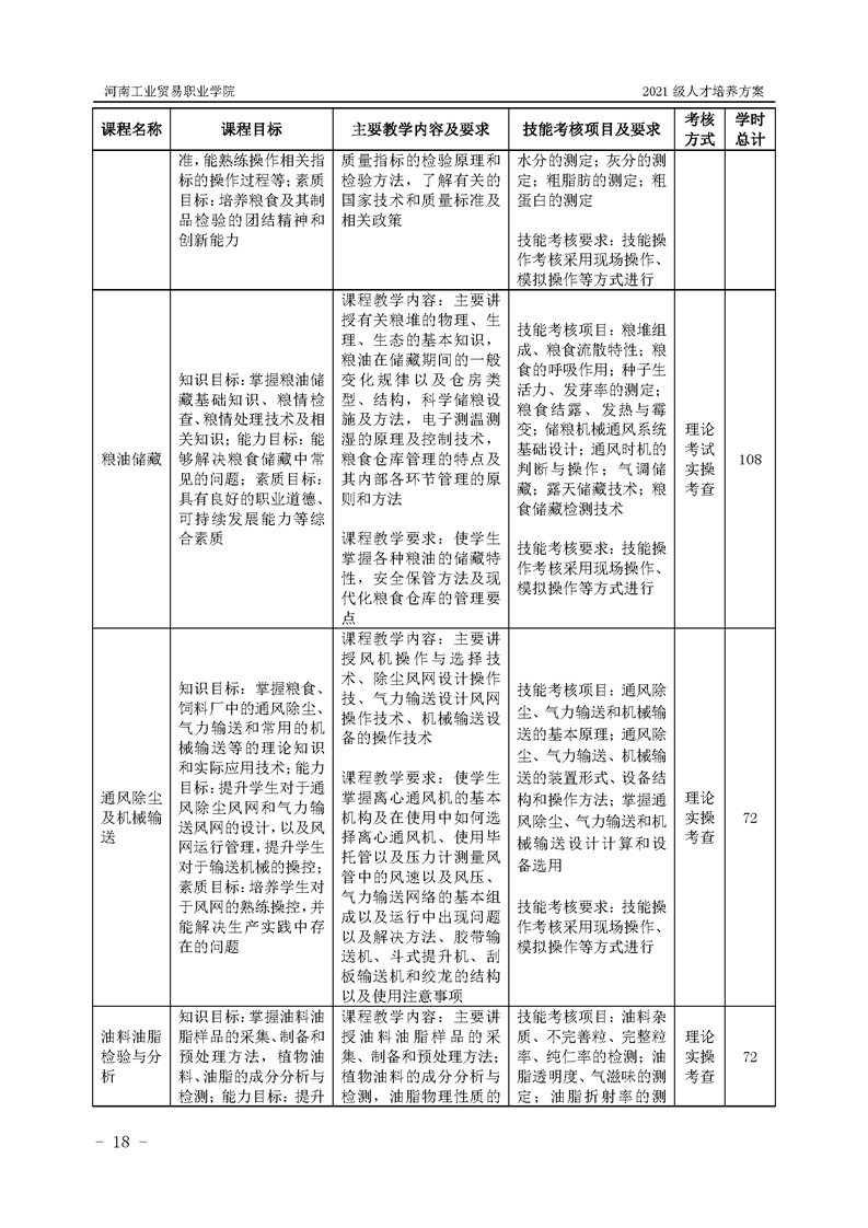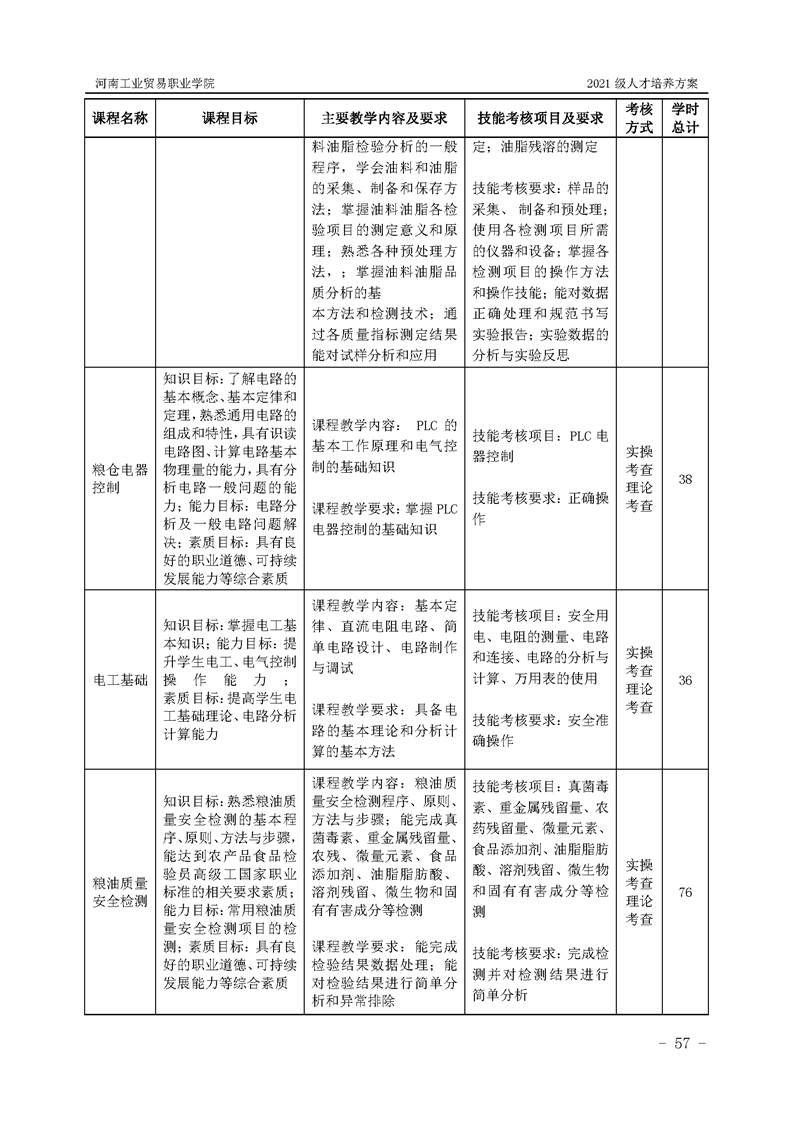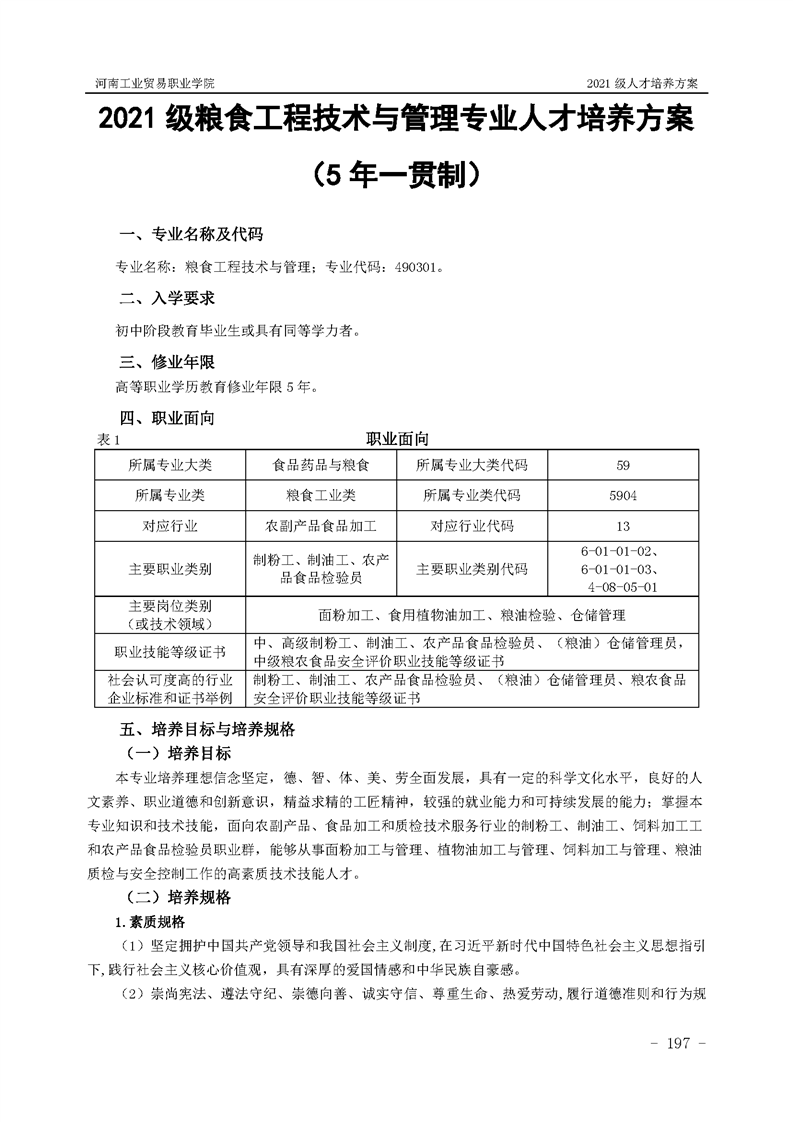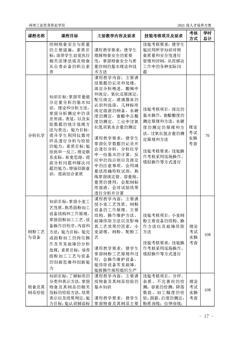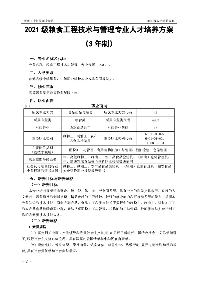 1.河南工業貿易職業學院2021級糧食工程學院人才培養方案