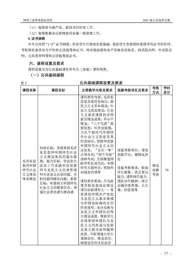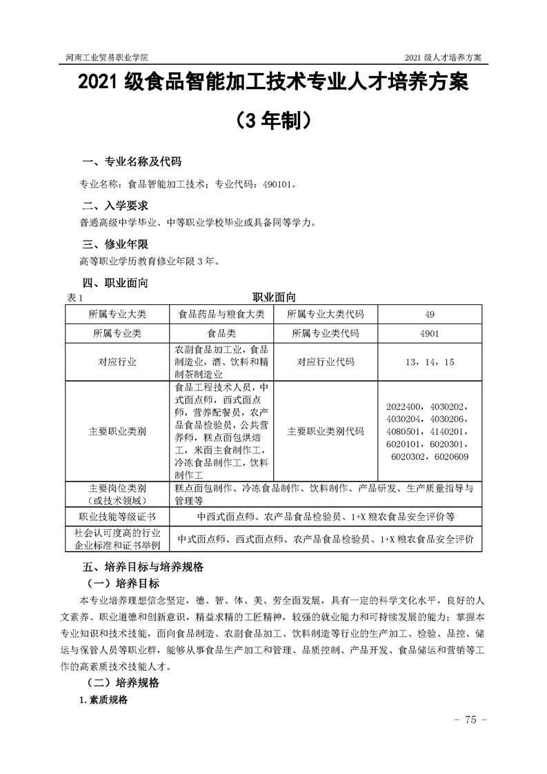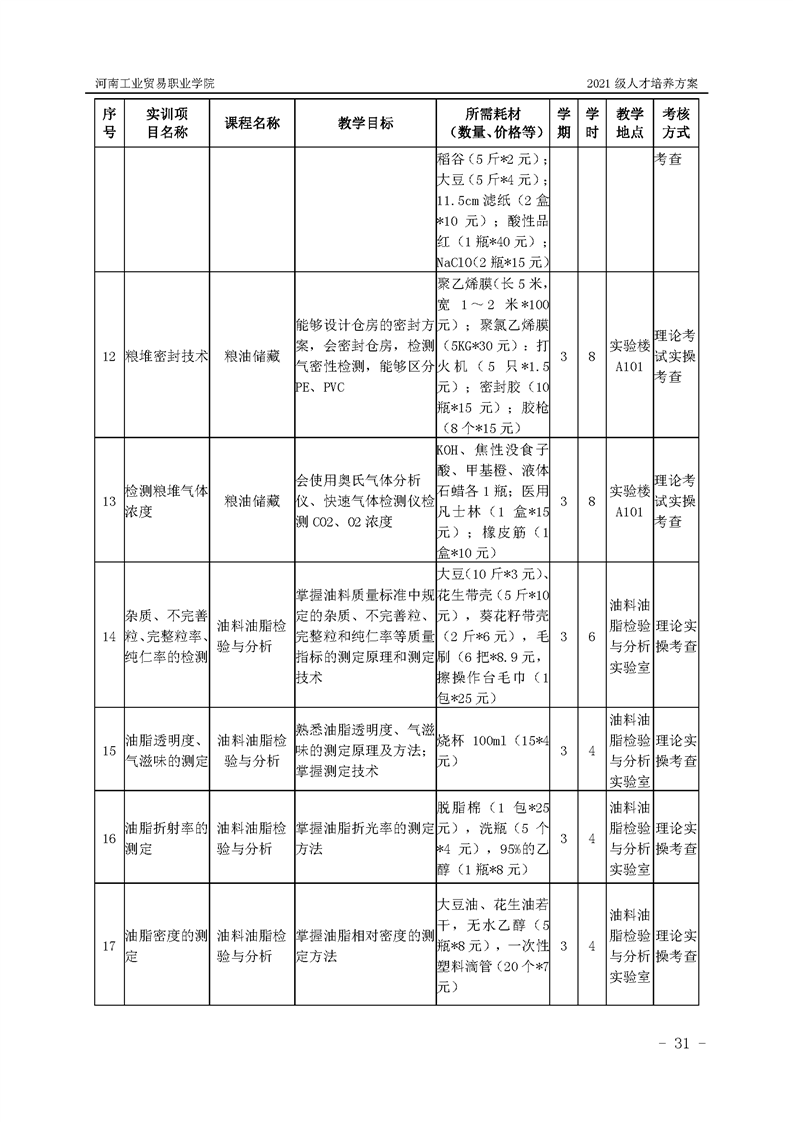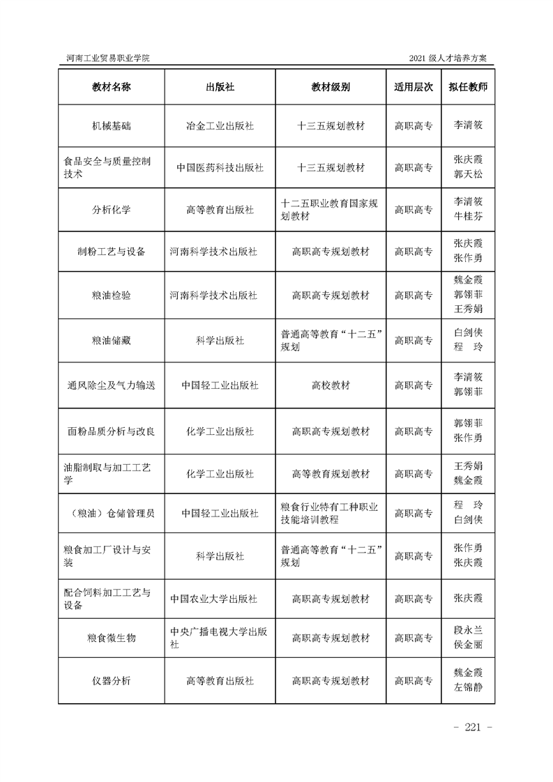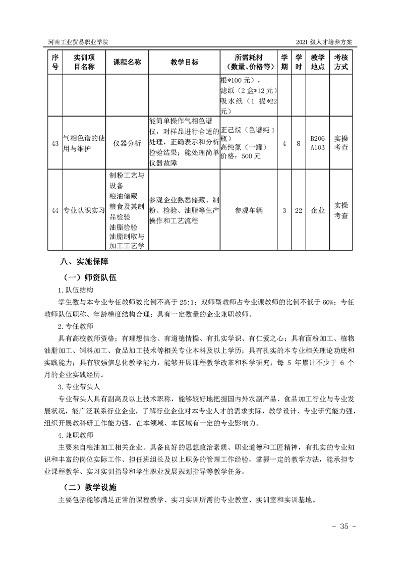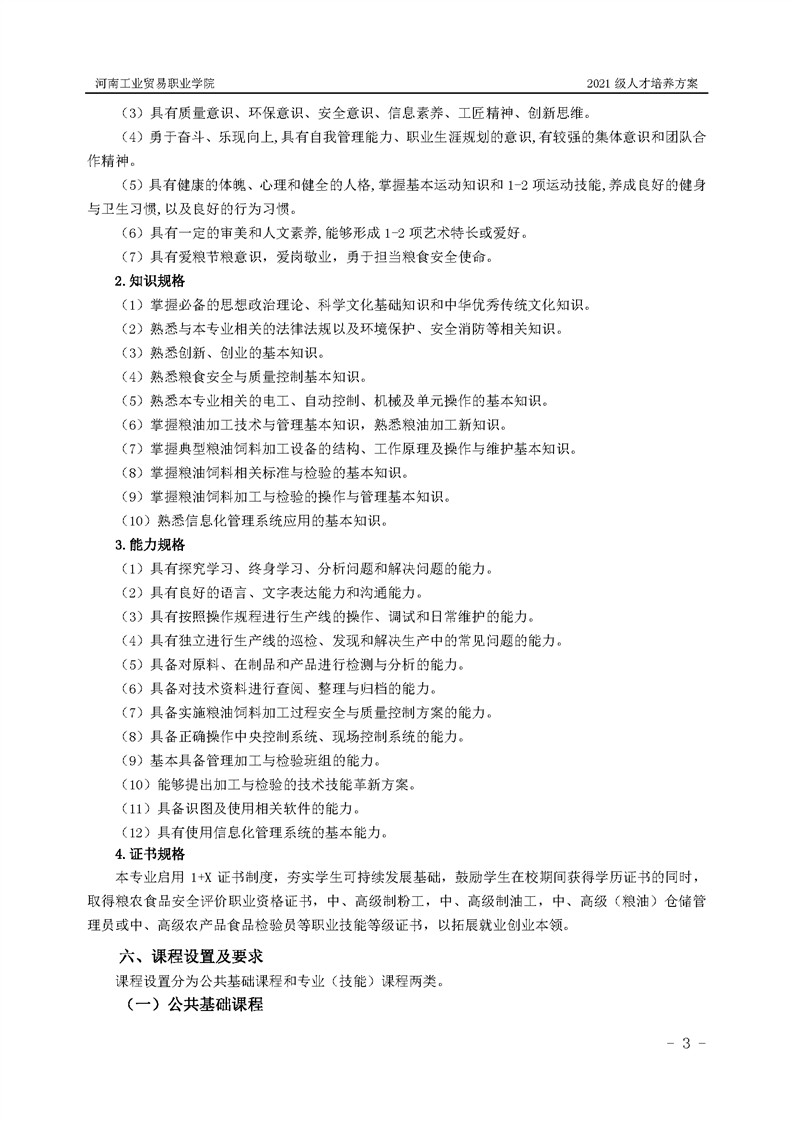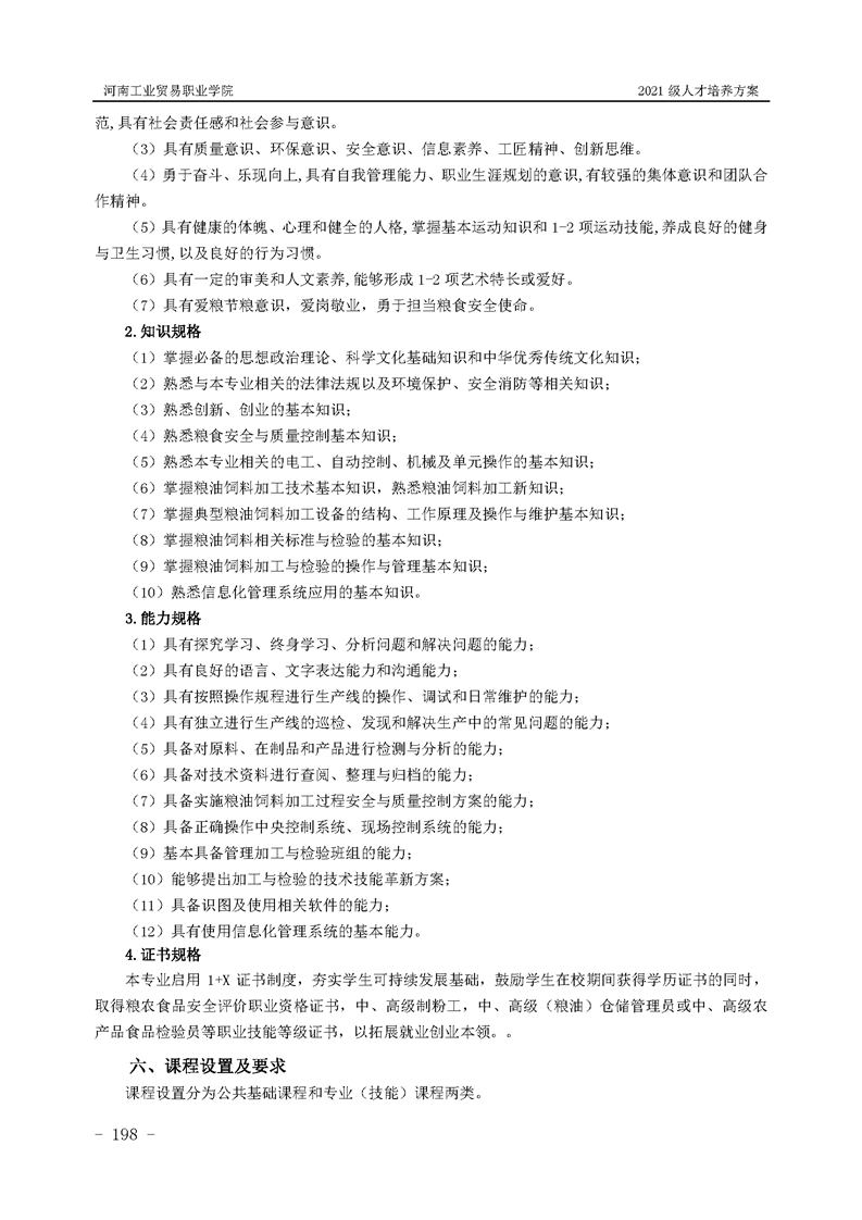 1.河南工業貿易職業學院2021級糧食工程學院人才培養方案