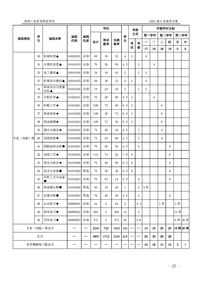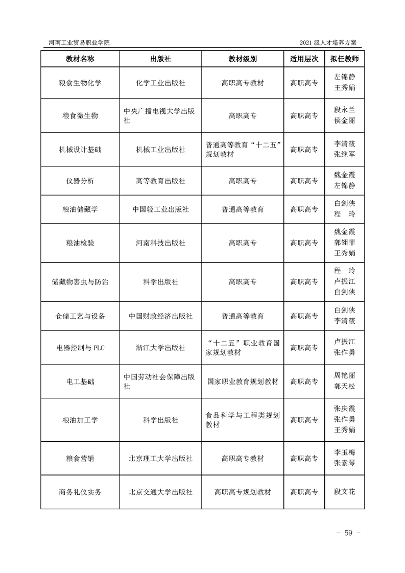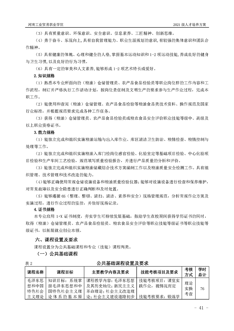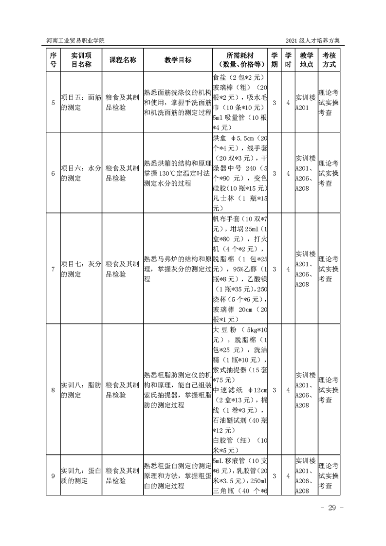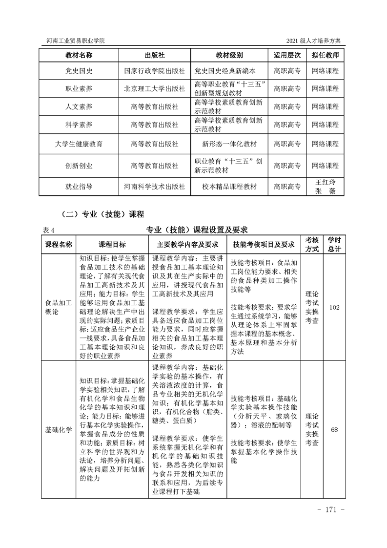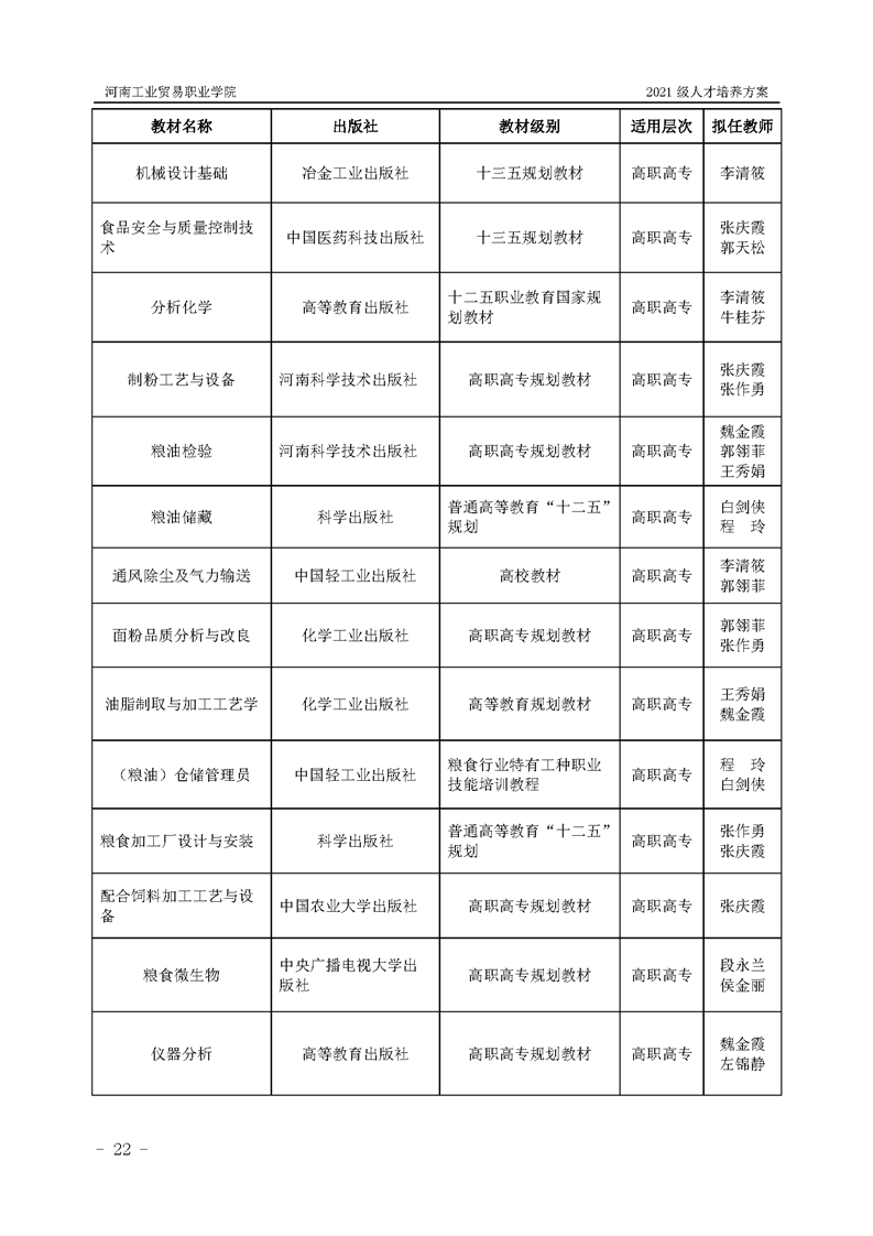 1.河南工業貿易職業學院2021級糧食工程學院人才培養方案