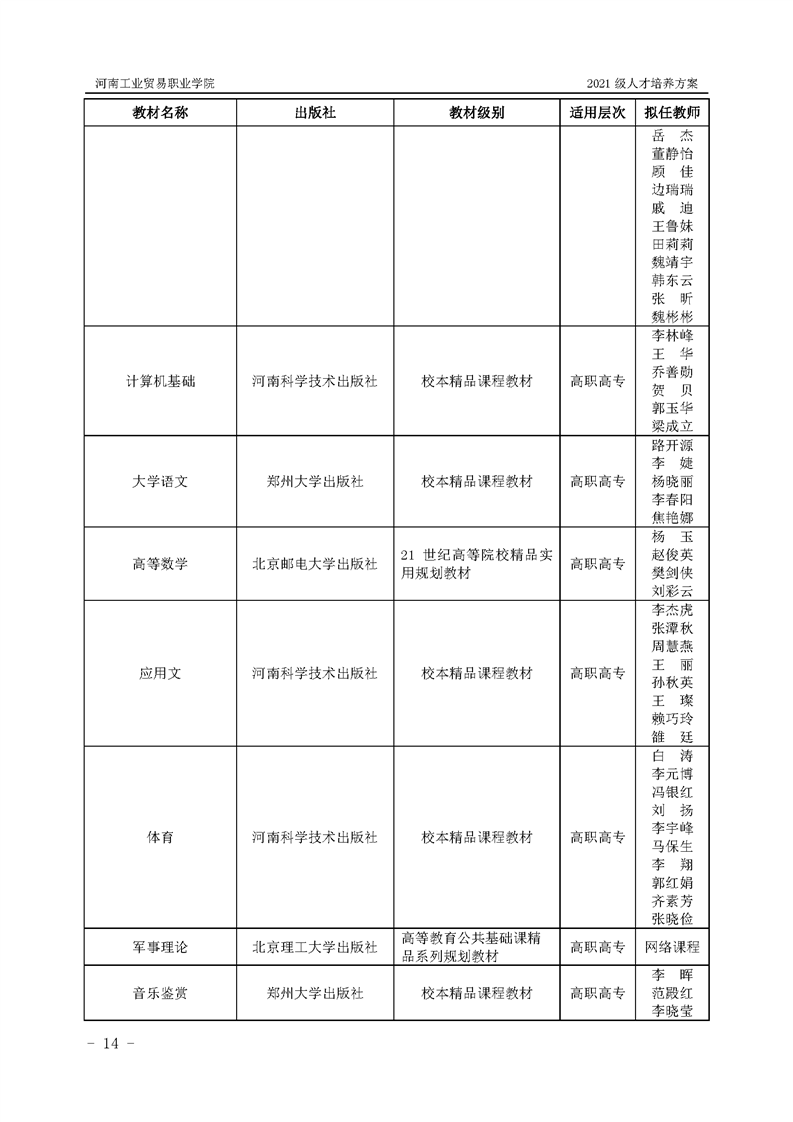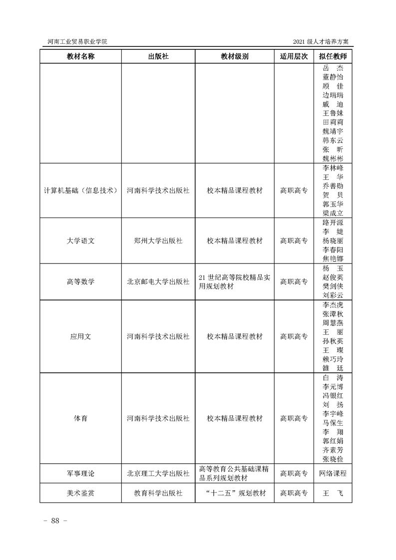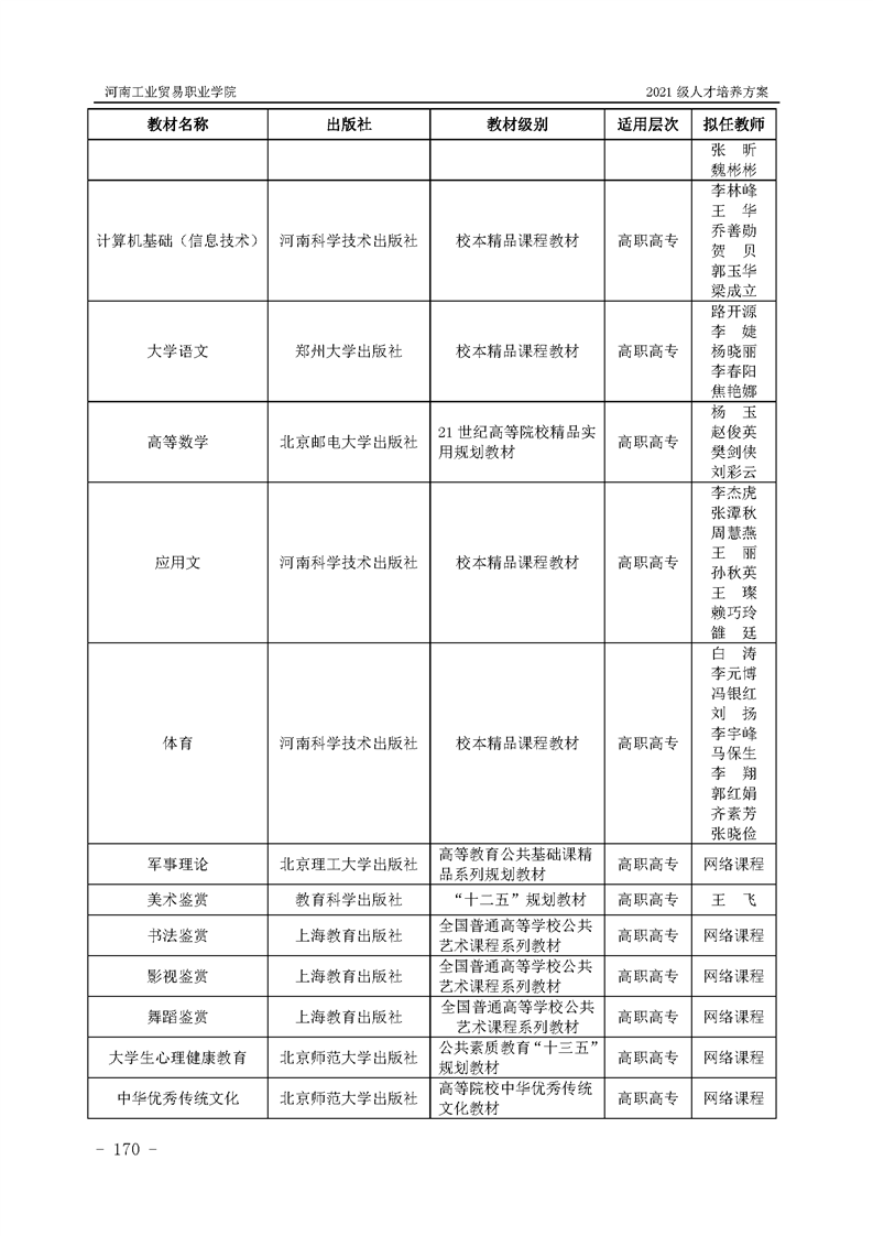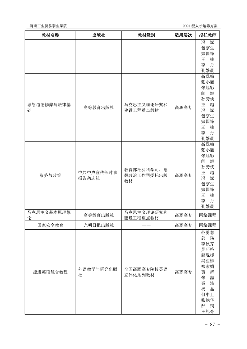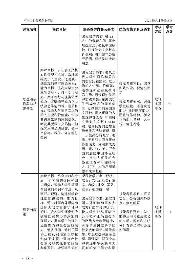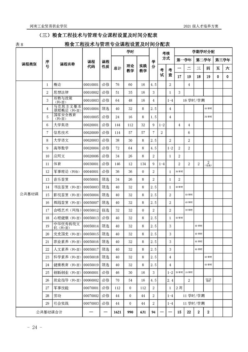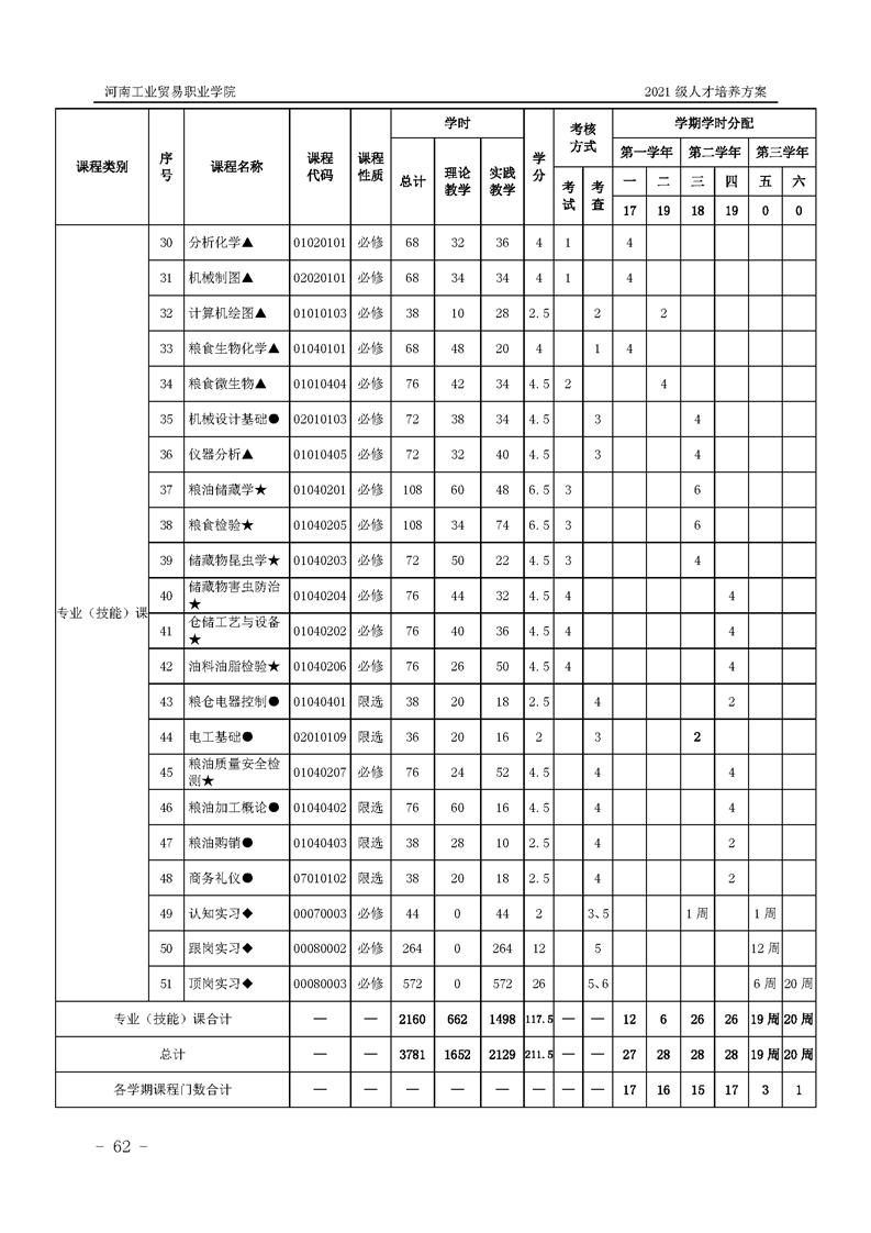 1.河南工業貿易職業學院2021級糧食工程學院人才培養方案