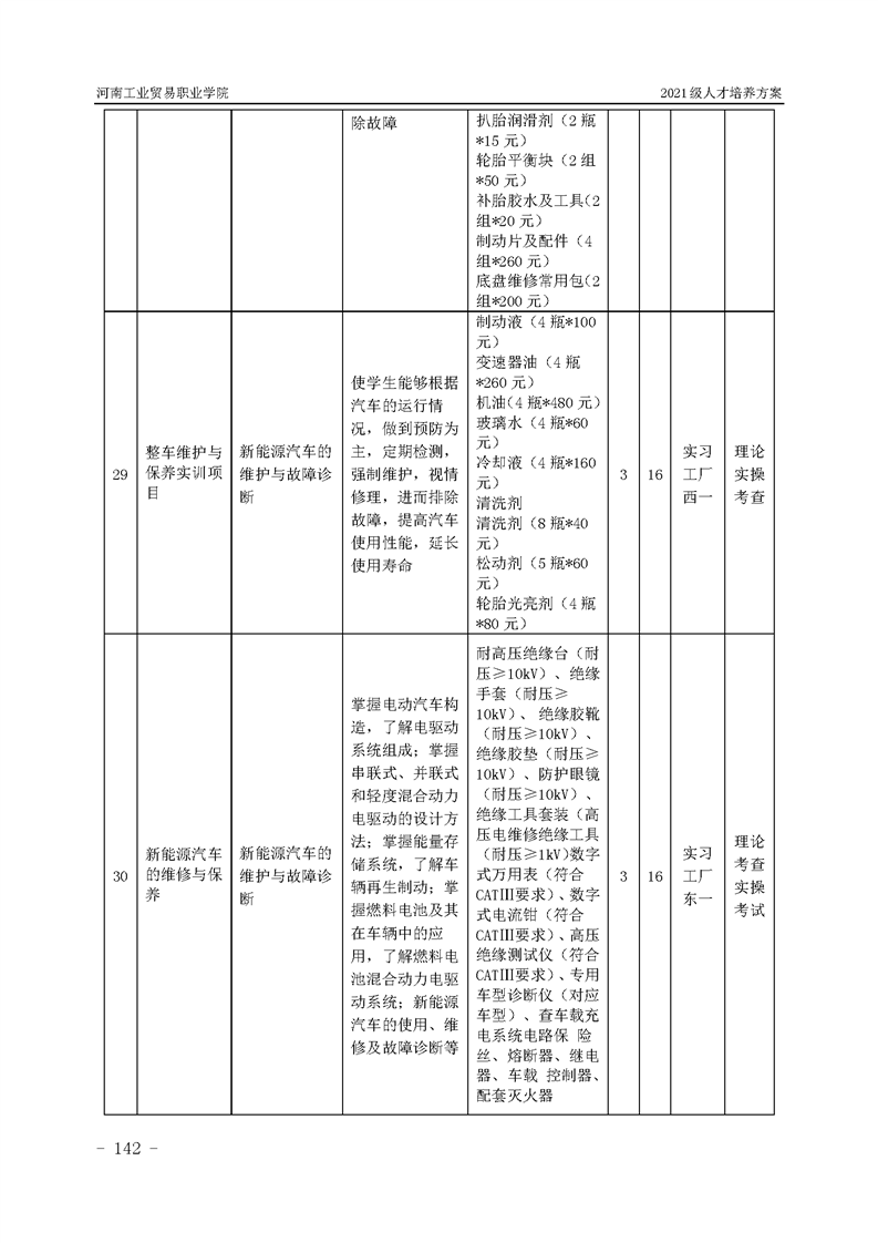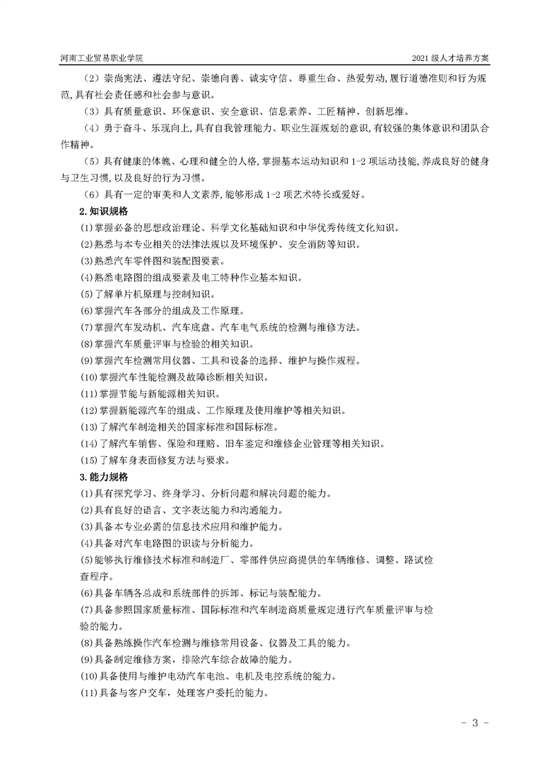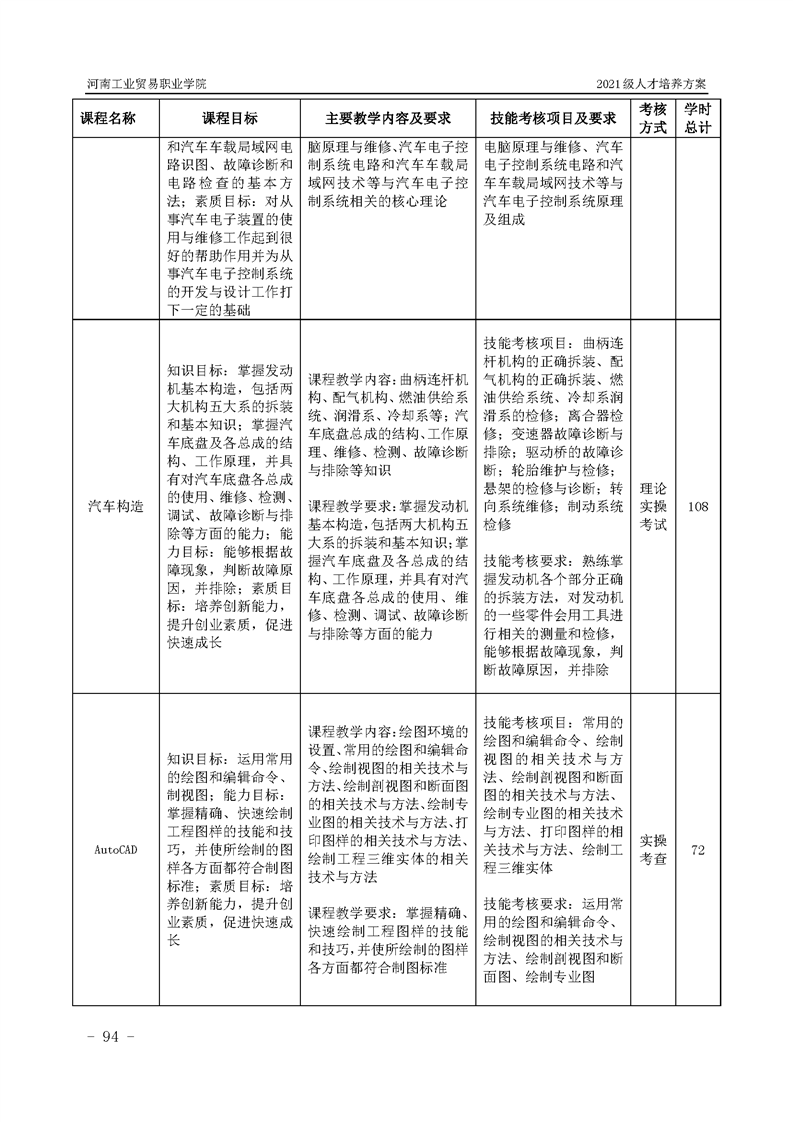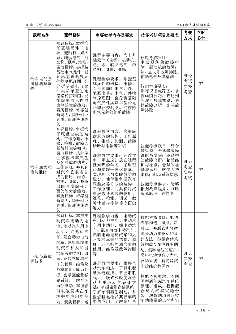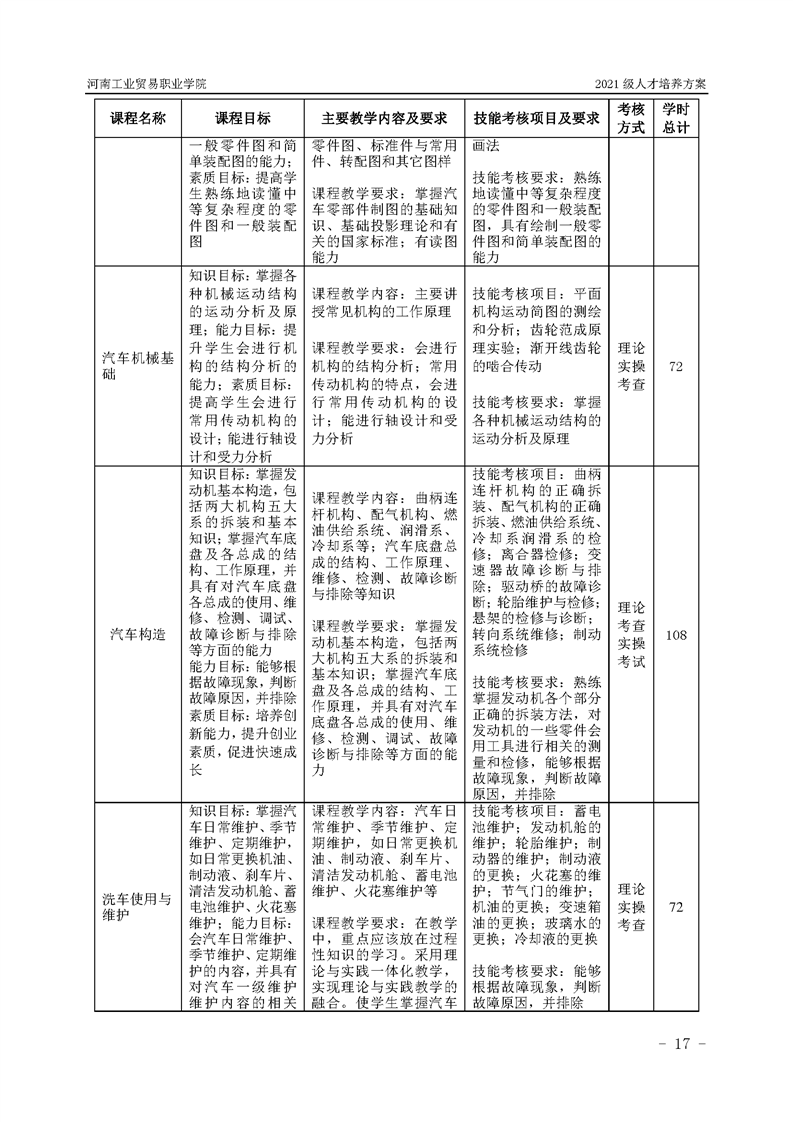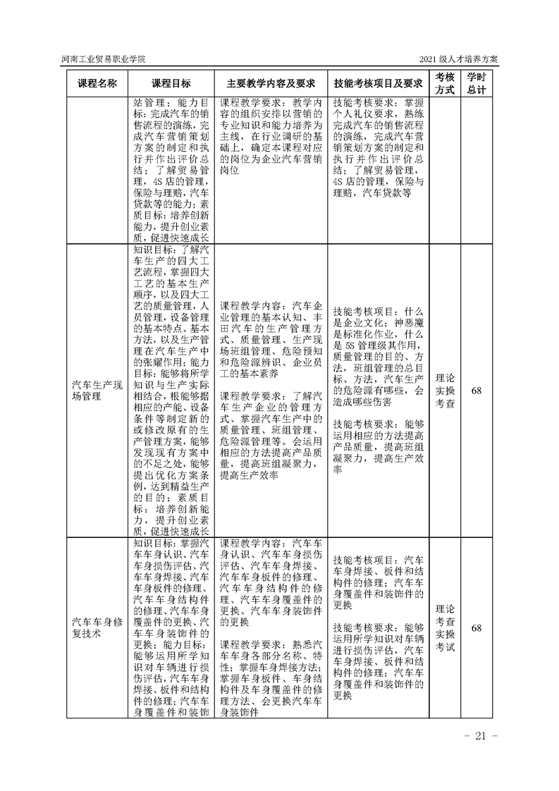 3.河南工業貿易職業學院2021級汽車工程學院人才培養方案