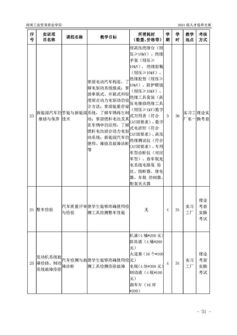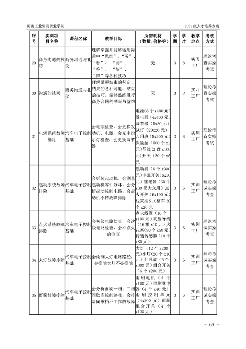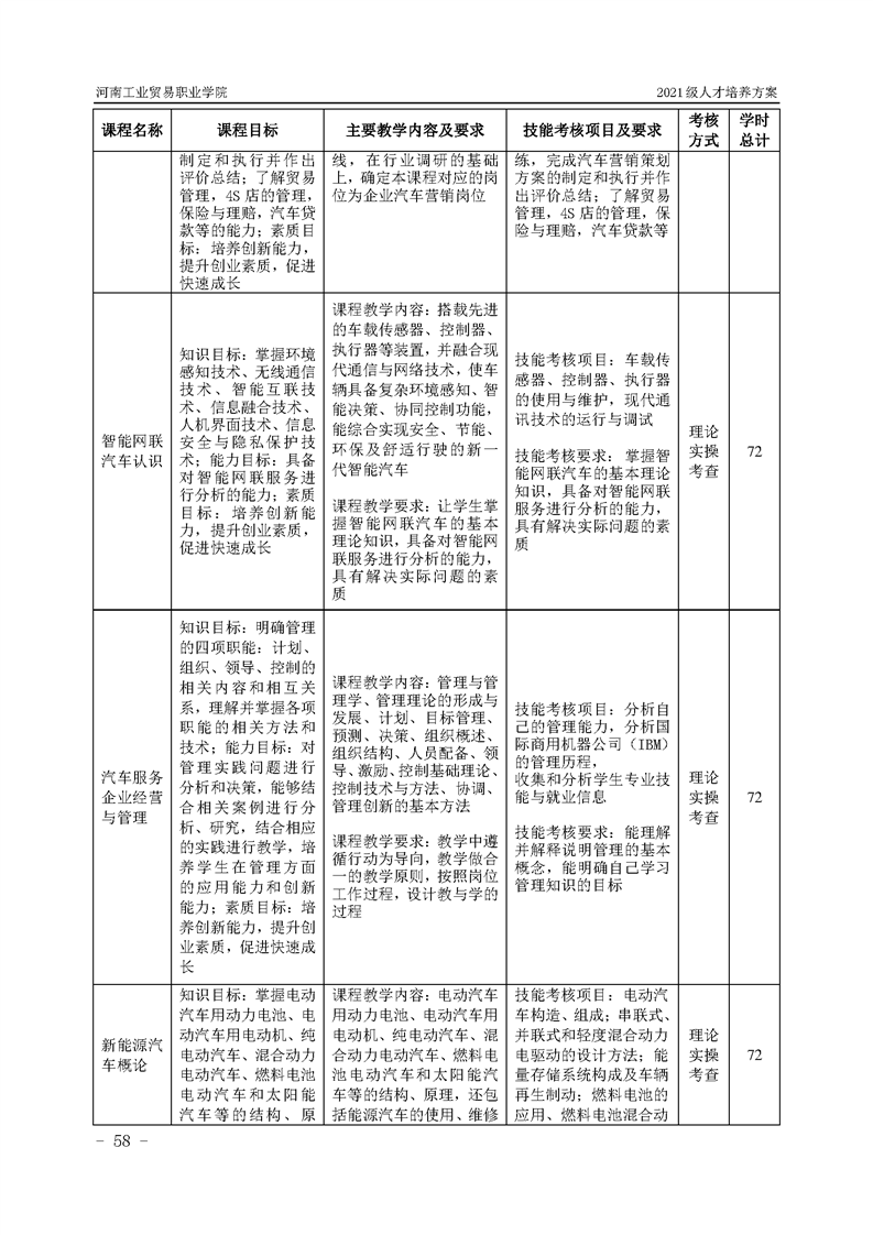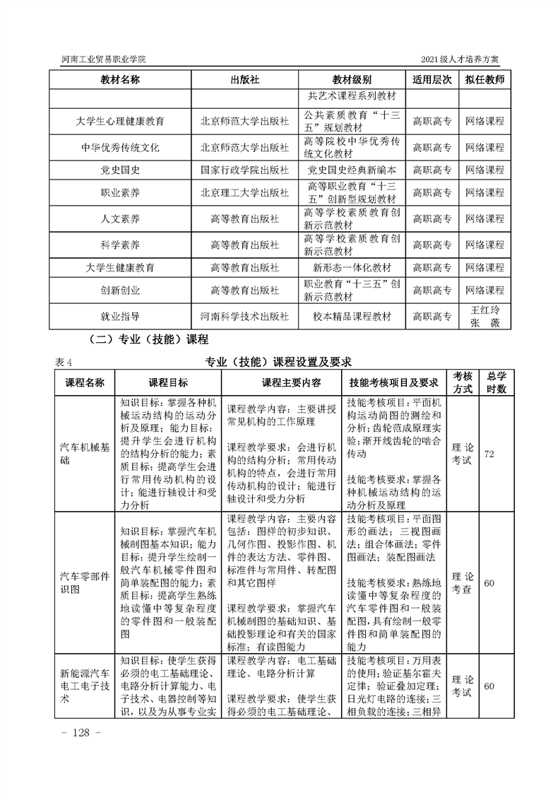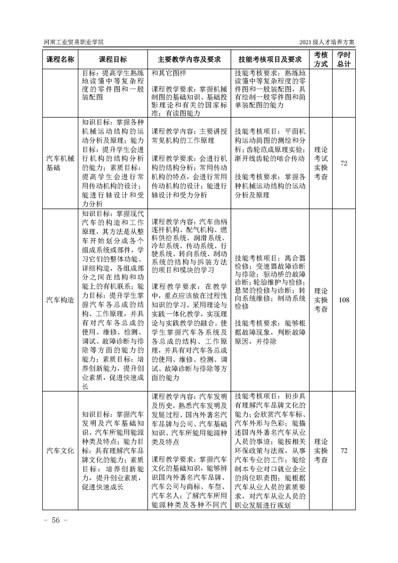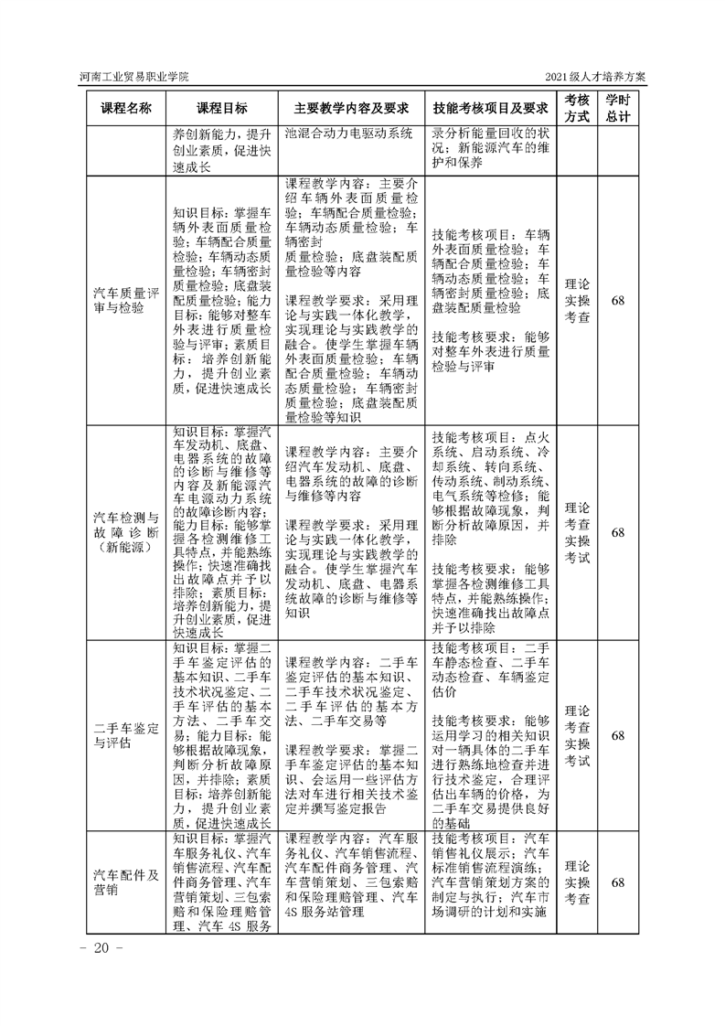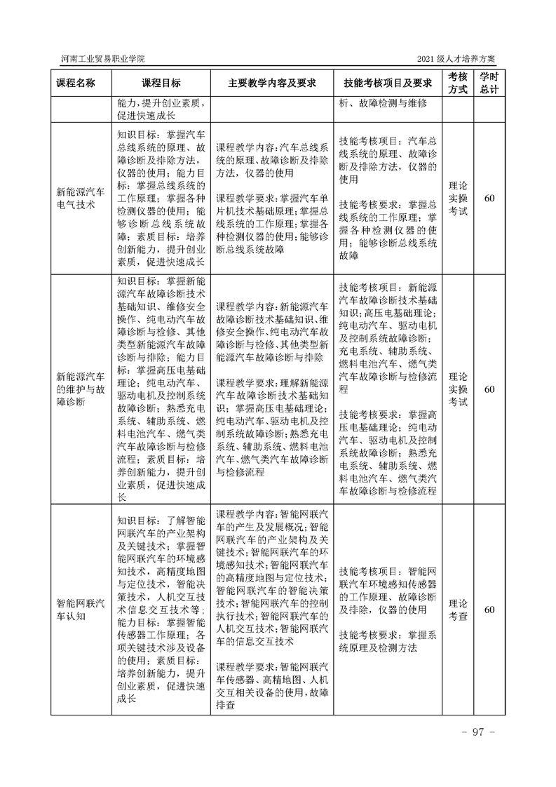 3.河南工業貿易職業學院2021級汽車工程學院人才培養方案