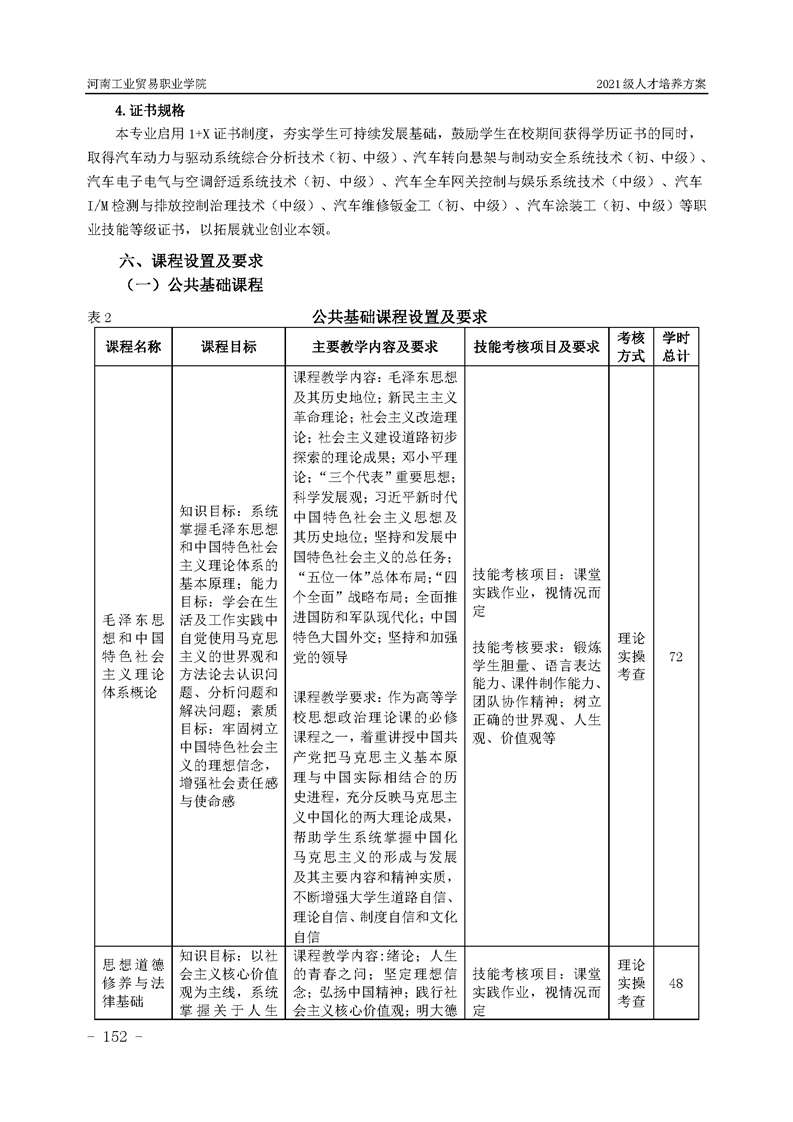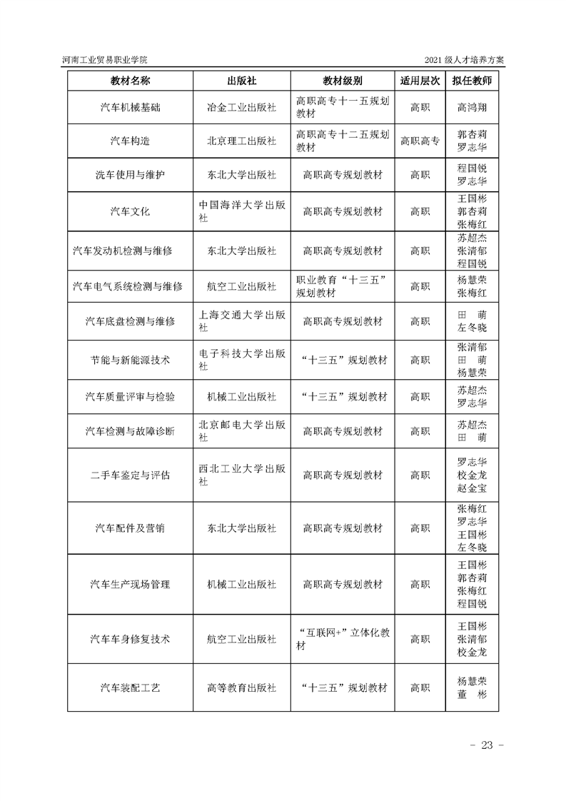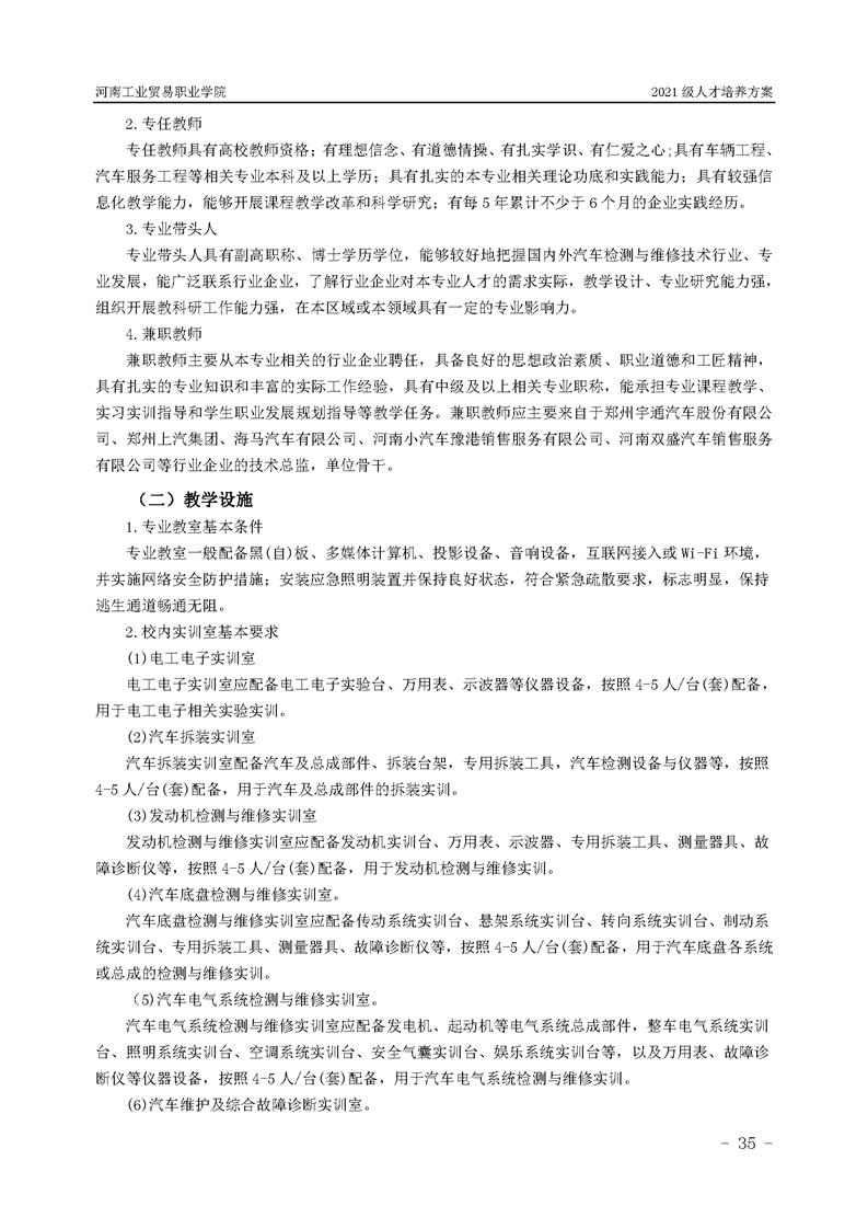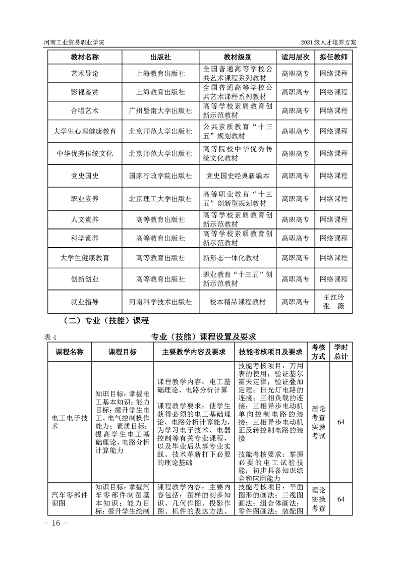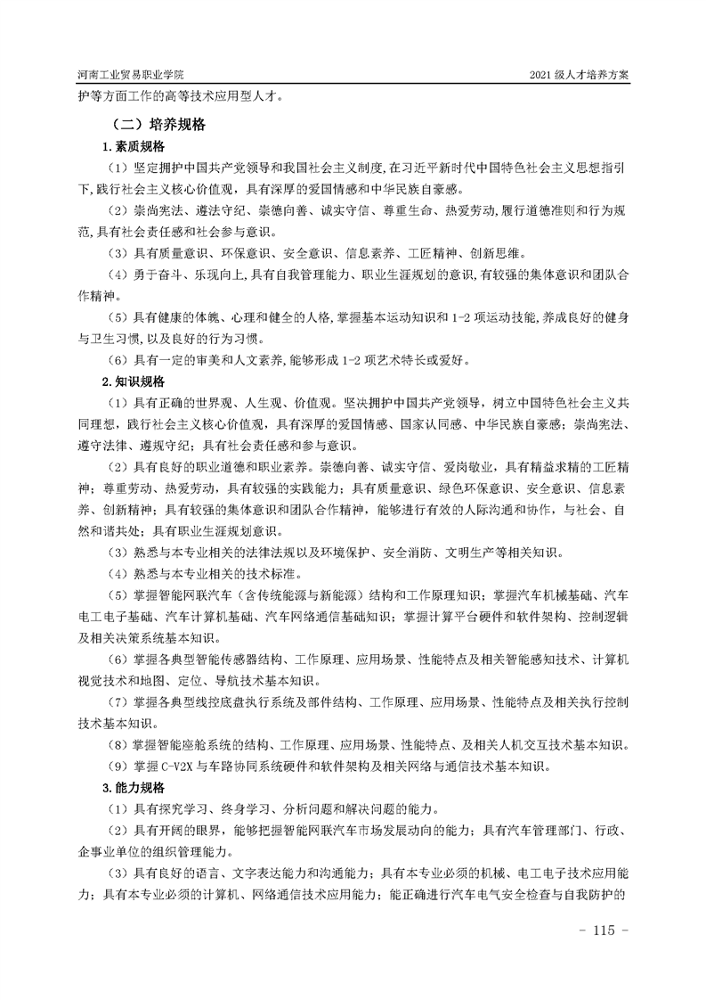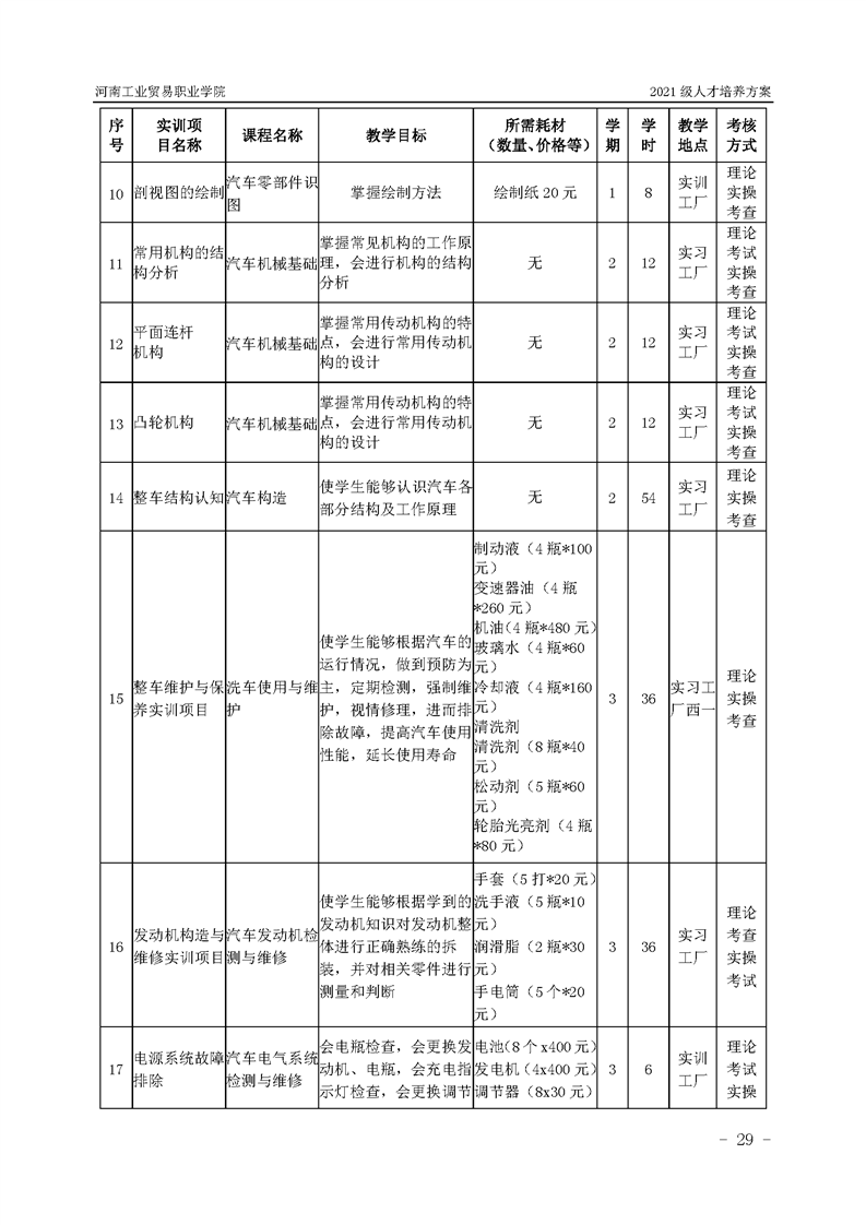 3.河南工業貿易職業學院2021級汽車工程學院人才培養方案